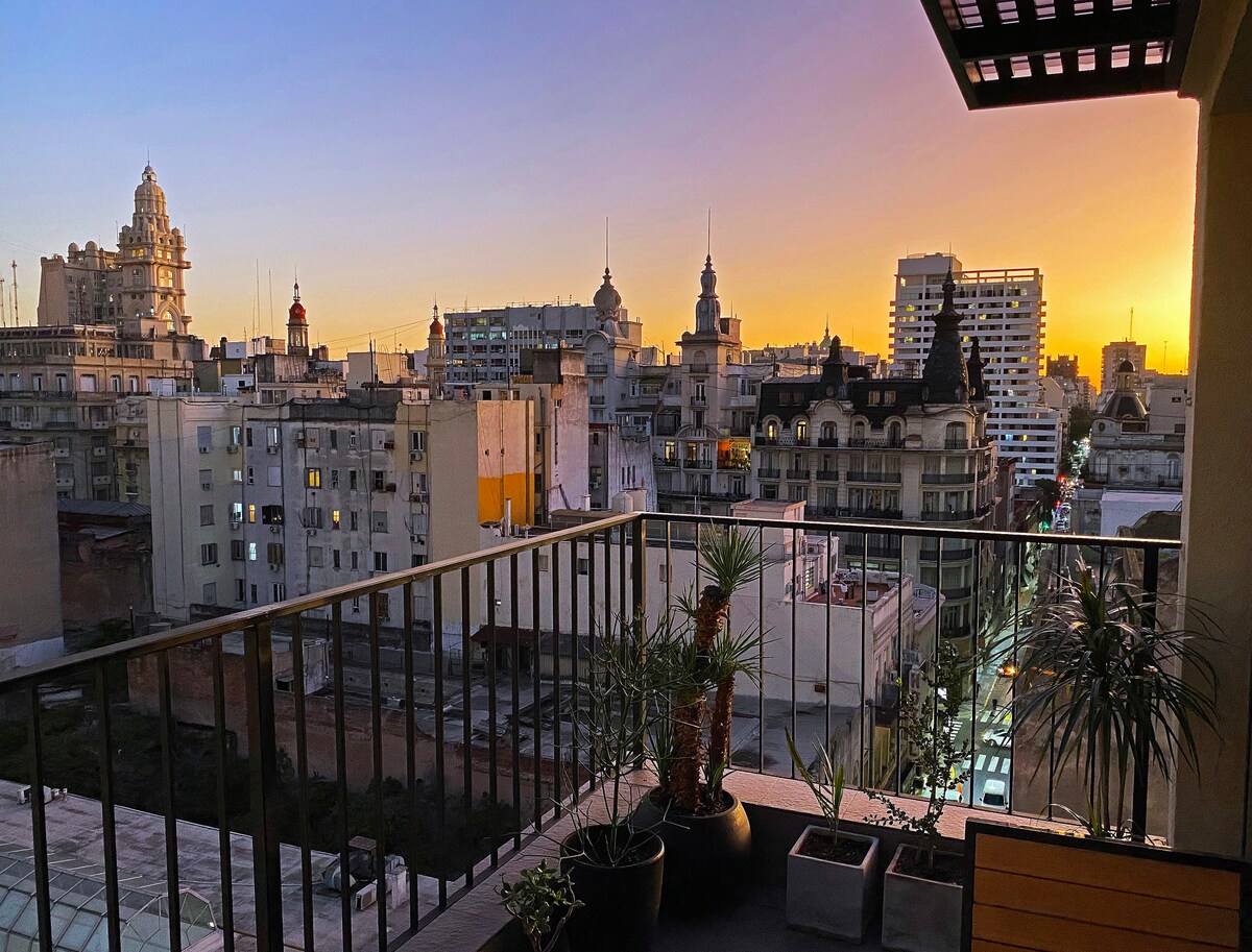 Beautiful, fully recycled designer studio with new equipment and a unique view of the city's old domes. Located in the old center of Buenos Aires, an area of great historical, cultural, architectural heritage and just 300 meters from the Obelisk, the accommodation is ideal for those traveling for tourism or work. Being in a central area and having a connection to the main means of transportation, it is ideal for visiting the city's main tourist attractions.