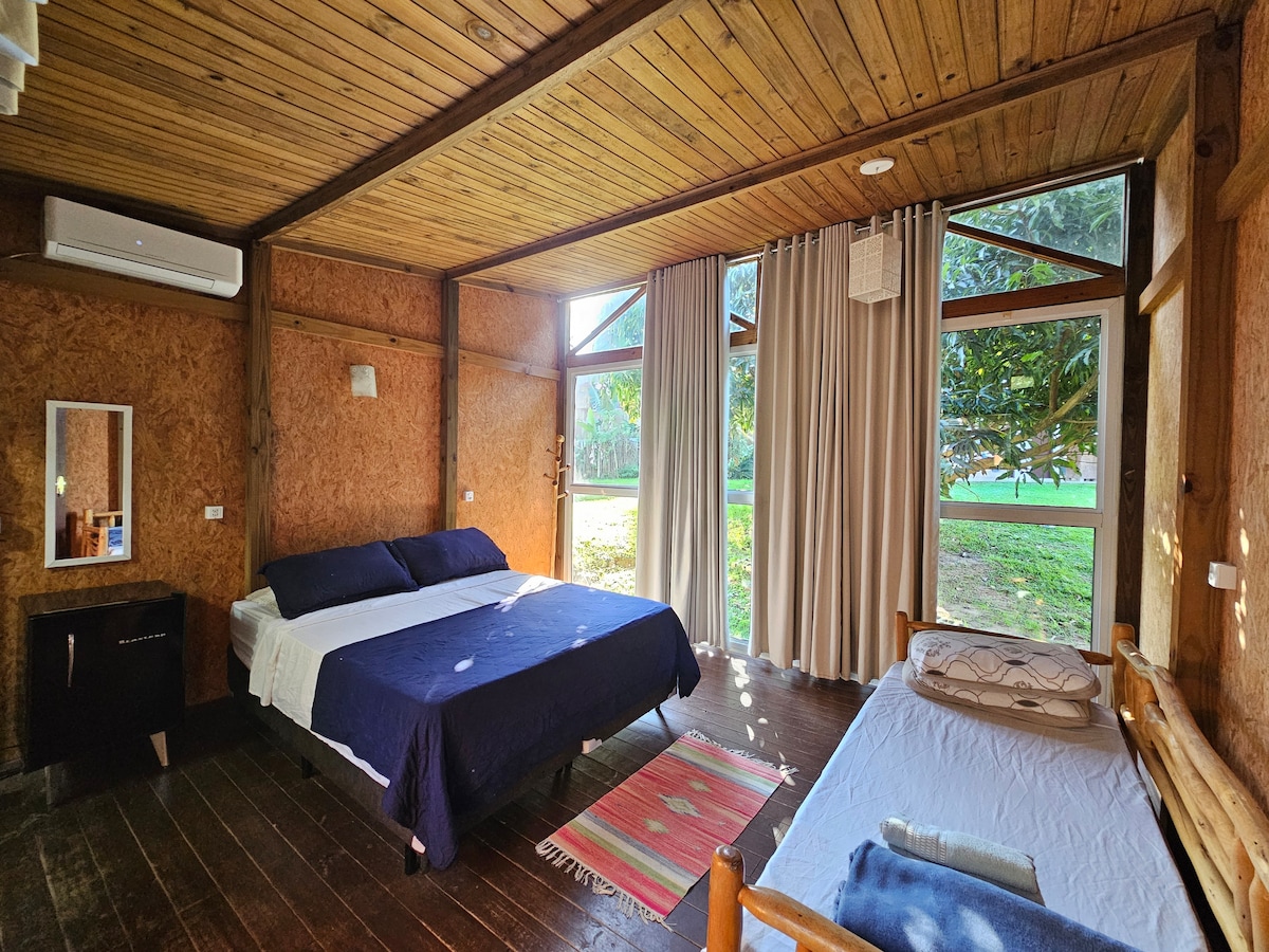 Kick back and relax in this calm, stylish space. The chalet is in the middle of native forest, surrounded by natural beauty, many species of birds, also close to the beautiful beaches and waterfalls of Palhoça.