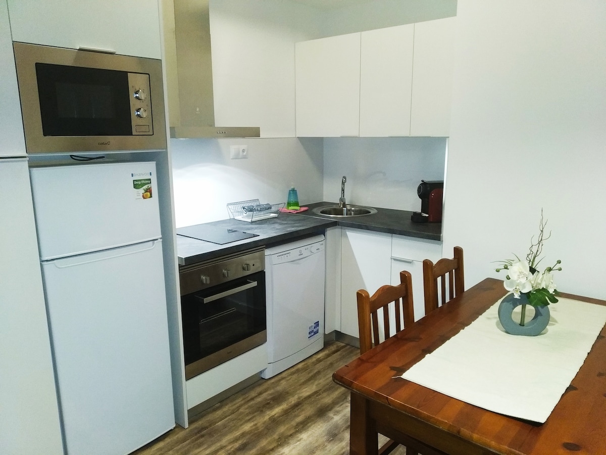 Lugares de interés: Este apartamento ( primera planta), com acceso al jardin comunitario (otro apartamento),por una escalera desde el el balcon. Dispone de 3 dormitorios, dormitorio principal suite con cama de matrimonio XXL y baño completo. Habitacion 2, con dos camas indivuales y TV. Lavabo con dutxa. Habitación 3 cama de 1,40 . Salon comedor, mesa para 6 comensales, estufa de leña y TV Cocina independiente equipada. Ubicado 20 KM de Andorra. La WIFI es de tarjeta, datos ilimitados.