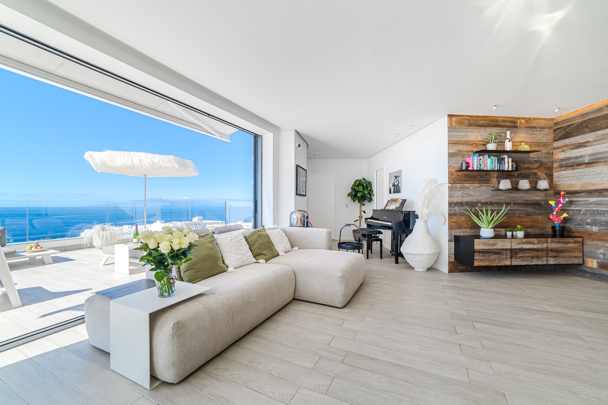 Be embrased by stunning ocean views and the soothing sound of waves “right at your feet,” bringing instant tranquility. Our modern penthouse has two spacious terraces with views of La Gomera and its unforgettable sunsets. In the evenings, the sky comes alive with vibrant colors. From the back terrace, enjoy the majestic Teide. Fully equipped with all amenities for a carefree stay, steps from the beach, cozy bars, and restaurants, this seaside paradise is your perfect Tenerife getaway.