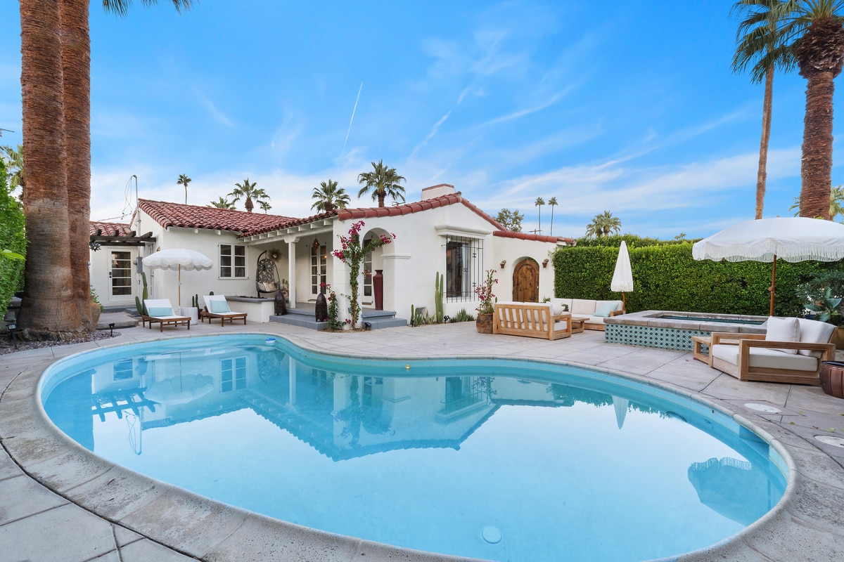 Welcome to The Sahara ~ a luxurious, newly renovated Palm Springs oasis! Half an acre estate showcases a resort backyard with oversized swimming pool & spa, spectacular mountain views and sunsets. Indulge in the cabana lounge, outdoor dining & bar, gas BBQ & fire pit. Endless entertainment await - ping pong table, putting golf green, bocce ball and corn hole! The Sahara has 4 one of a kind bedrooms and 4 bathrooms. 3/3 in the main house & 1/1 in the separate casita.
