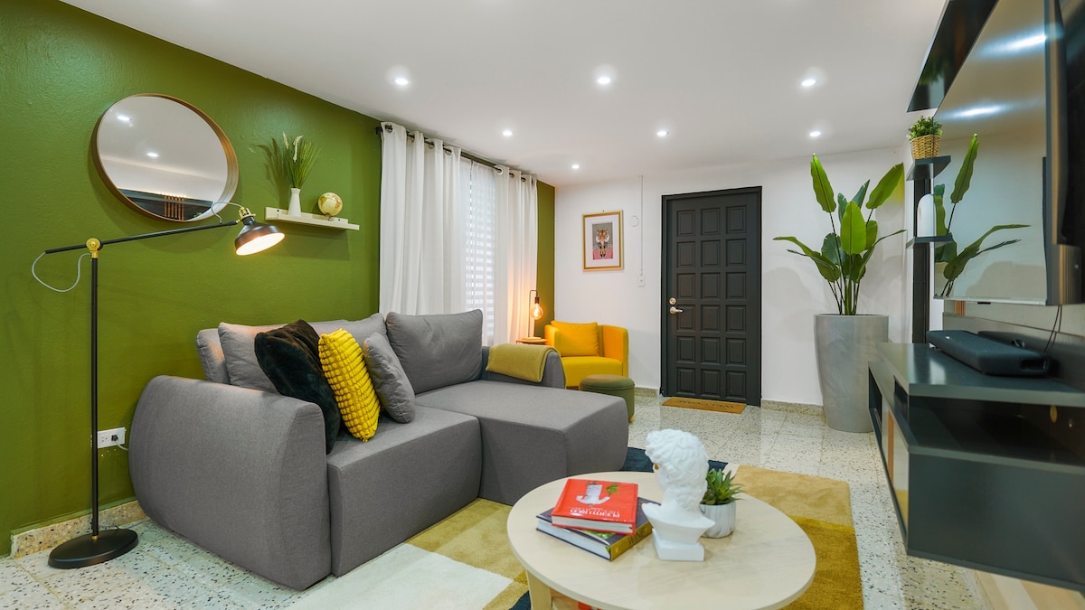 This Airbnb is cozy and warm, with wooden furniture and soft textiles that invite you to relax. The decor is inspiring, with unique details, local artwork, and plants that create a creative atmosphere. The space is relaxing, with a terrace surrounded by a spectacular view of the east coast of PR ideal for families, with a functional kitchen and play areas that make everyone feel at home. In addition, the neighborhood is safe, ensuring a quiet and comfortable stay.