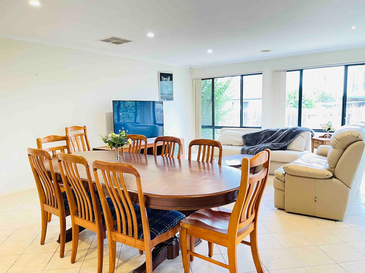 Great location in Gungahlin which is close to everything in the town centre. An entire house and the perfect place for a big family or a group to stay. Five bedrooms in total with plenty of beds. The guests will have full access to the house except for the garage to enjoy the best on their own. Pet-friendly house where you can bring your loved dog/cat with the stay. BBQ also available. A $50 extra charge applies for the additional cleaning. Safe parking with a security camera on site.