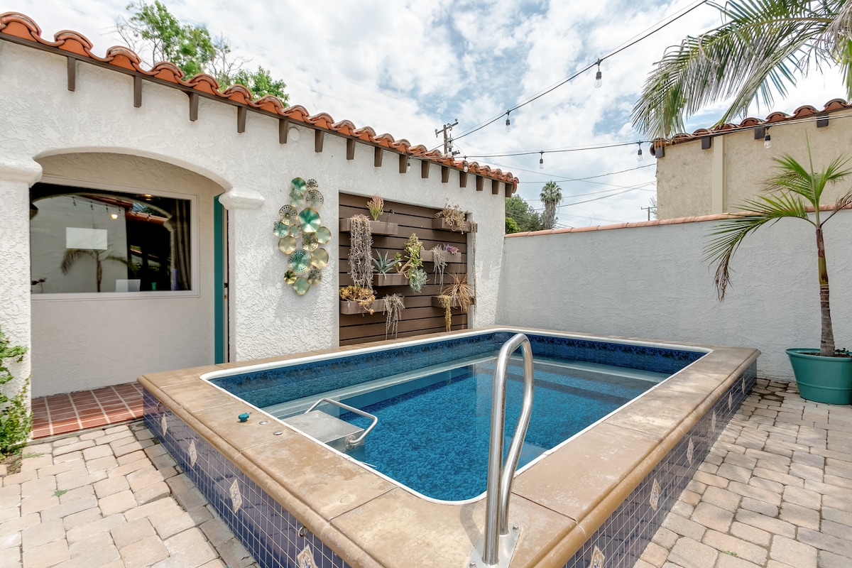 Sink into the leather sofa under a triangular wood-framed picture window and admire the art and colorful rugs that fill this Spanish-style home. Outside, take a dip in the shared splash pool, relax on the sunny patio, or gather around the fire pit. Please note, there is a guest house in the backyard. The backyard is a common area amongst guests. The splash pool is small, only 3.5 feet deep. All guests must use their discretion in practicing social distancing. This space is a classic Spanish style house built in 1932, but has been completely renovated with all new everything. We are nestled in the heart of the historic Wrigley neighborhood in Long Beach. A fully equipped kitchen, crisp linens (hypoallergenic), towels, games, and Netflix await you. You'll find coffee, tea, water, and some rotating treats floating around. You'll also love the 56 inch 4k Smart LED television. Jet to downtown, the beach, Bixby Knolls, Cal Heights or Belmont Shore within minutes. Several culturally diverse restaurants with fantastic food, and amazing coffee shops, sprinkled around the neighborhood just a short drive away. -The Spanish House has a completely detached small guest house in the rear of the yard called "The Little Bungalow" that is also an airbnb. Other than that the whole front main house is entirely yours and private! -The pool and fire pit are common areas, but you can use them at any time. -You will be given a temporary access code for the front door prior to your arrival. Please note, the door locks automatically upon exit, so you'll need to enter the access code each time. You may see me out and about in the back yard at times, feel free to come and say hello. Sometimes I make friends and we chat outside around the fire pit, sometimes I'm away. However, I will respect your privacy and our level of interaction will be organic. If you have any questions during your stay, don't hesitate to message me! The home is in a culturally and architecturally diverse neighborhood of Long Beach. Shops and restaurants are about five or six blocks away, so it is easier to bike, drive, or ride-share instead of walking to attractions. The beach, aquarium, Queen Mary, and convention center are all about 2.5-3 miles away. Some people bicycle, but I recommend driving/UBER/Lyft to get to most places. 1) There is one airbnb called "The Little Bungalow" located in the back of the yard. This is entirely separate with it's own entrance. 2) The Spanish House has its own private parking in the front driveway. 3) The main backyard is a common area, for all guests to share and use the pool, and fire pit. 4) The pool guy comes early Friday mornings for 15 minute maintenance. 5) The gardeners come Wednesdays for 1 hour maintenance.