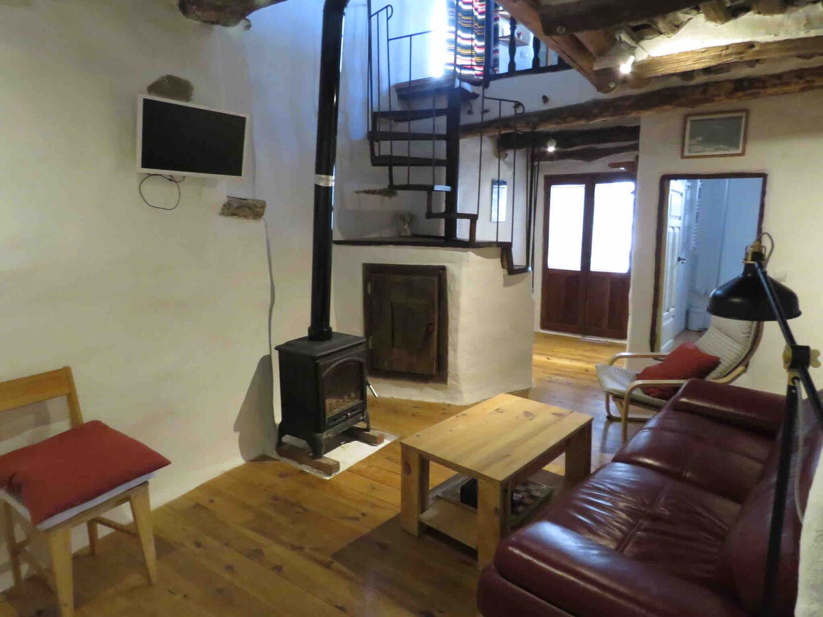 It is a rural house located in the Sierra de la Alpujarra. The house has beautiful views and is located in the middle of the mountains. It is a type of sustainable house that has solar panels and water coming directly from the mountains. The house has a balcony to enjoy the view while eating or watching the stars while dining. Features a living room with a sofa bed and a fireplace, a kitchen with all the necessary cooking utensils, a bathroom, and a master bedroom