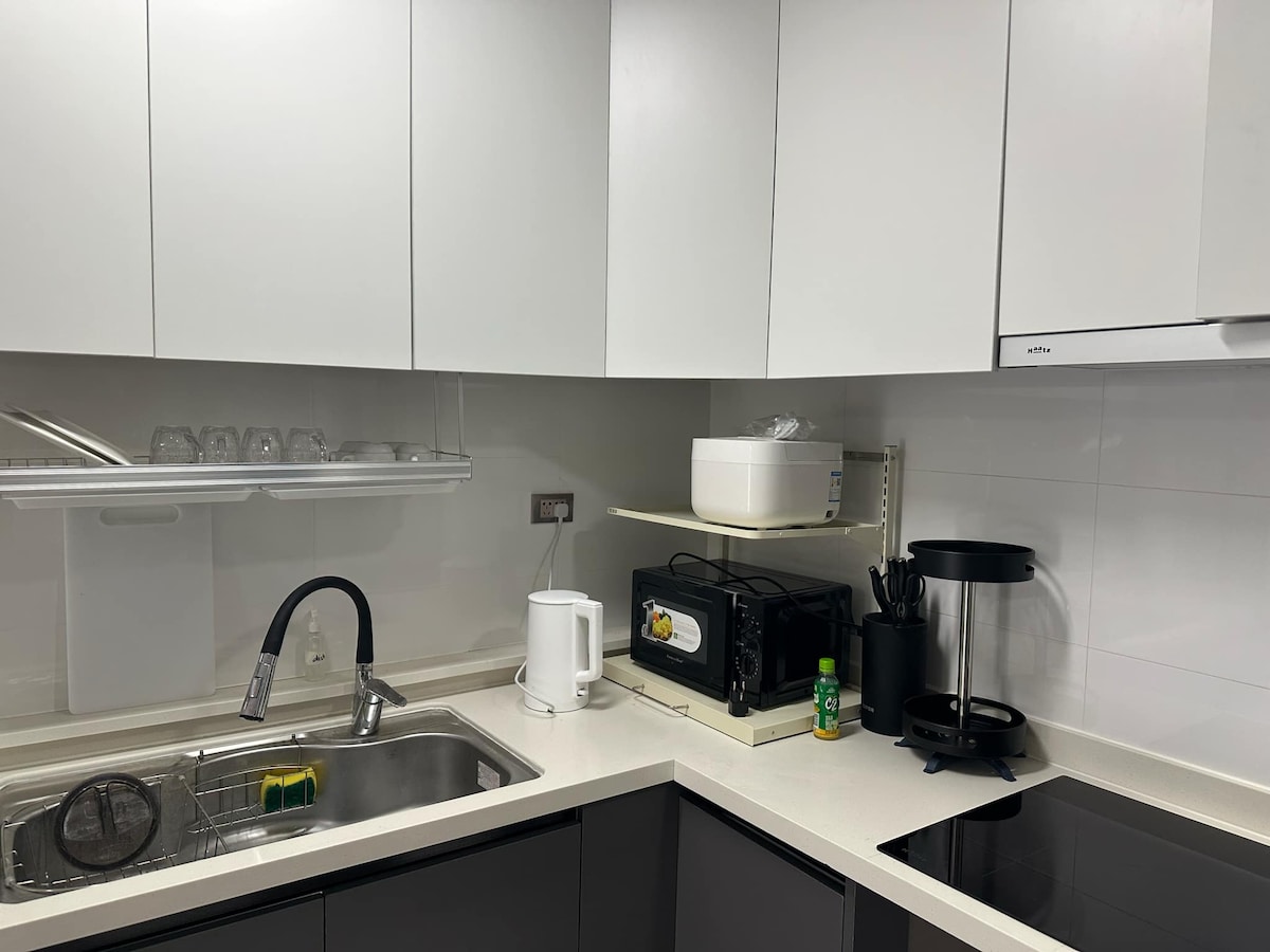 Angelic Premier Residences is close enough to SM, Korea town, restaurants & bars, but far enough that it's not too noisy. The building has gym, 24-hour rooftop pool, and a sports bar with a billiards table. There is common parking in front of the condo on a 1st come 1st serve basis + additional parking lot across the street. This is a fully-fitted 1-bedroom apartment with easy check-in, 2 x Netflix TVs, 200Mbps Fibre Optic Internet, 1 x King-size bed, one fold-up single bed and a comfy couch!