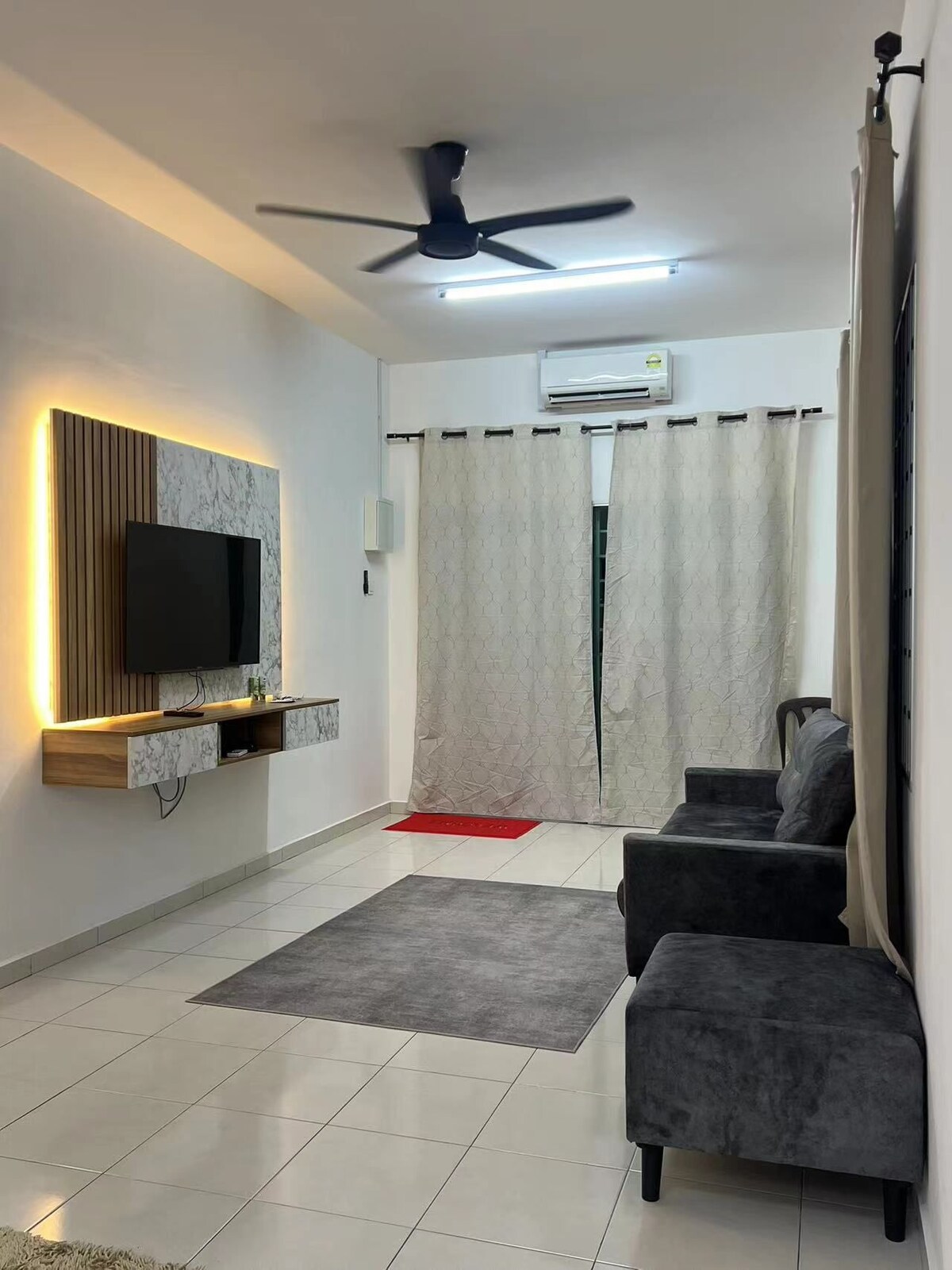 Stylish apartment in town with fast wifi, Astro full pack, Netflix, and Disney+. Enjoy access to pools, gyms, and a rooftop sky garden. Centrally located near AEON mall, TGV cinema, and restaurants. Experience it yourself!