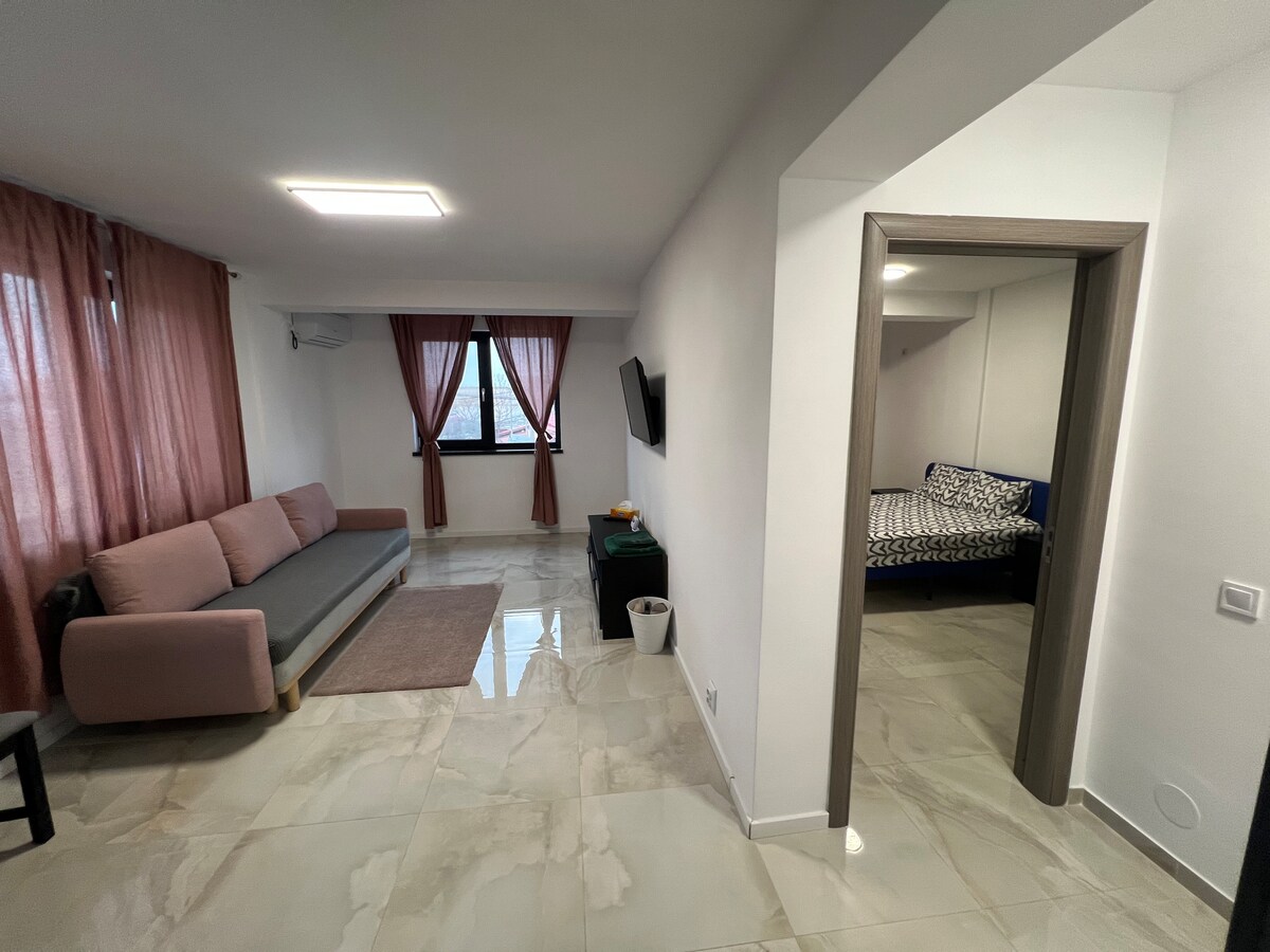Enjoy this spacious two room & terrace apartment in a brand new complex. Only a short 15min metro ride to Bucharest’s vibrant city centre and Old Town. - Sofa-Bed+ - Huge private terrace - Kids play area - Washing Machine and Tumble Dryer - Superfast WiFi - Smart TV with Netflix - Smart Central Heating - Air Conditioning in ALL rooms - Secure underground parking - Highly secure gated building complex. We’re not new to Airbnb. Check out Andrei’s 90+ reviews of welcoming guests in the UK 🇬🇧