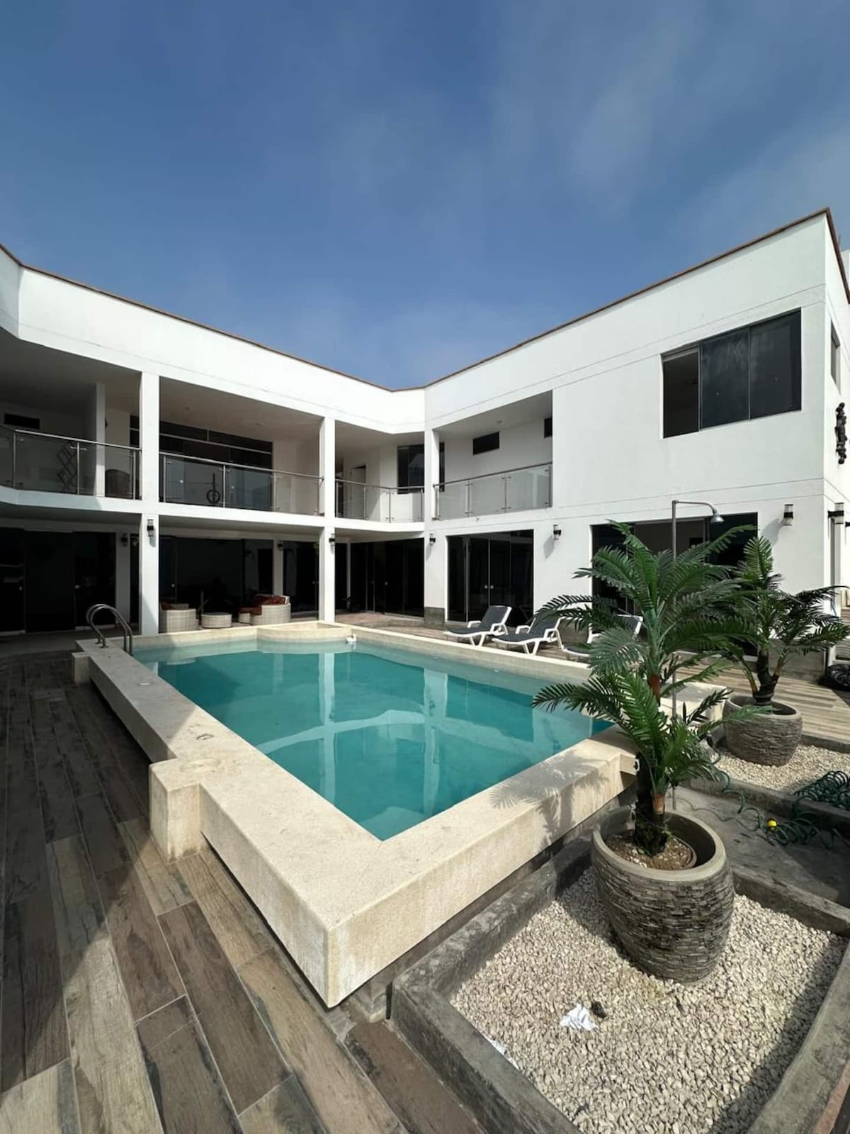 Modern and bright, luxury house, with beachfront pool, just steps away from the ocean. Housekeeper and private Chef included! Located in one of the most beautiful natural reserves in South America (Paracas) - a beach oasis in the middle of the desert, surrounded by a national parks and centuries of pre-Inca history, and 1 hour away from the Nazca lines! 3 spacious bedrooms with en-suite bathroom and closet, TV room, modern kitchen, laundry room, and a bedroom for service staff, a true gem!