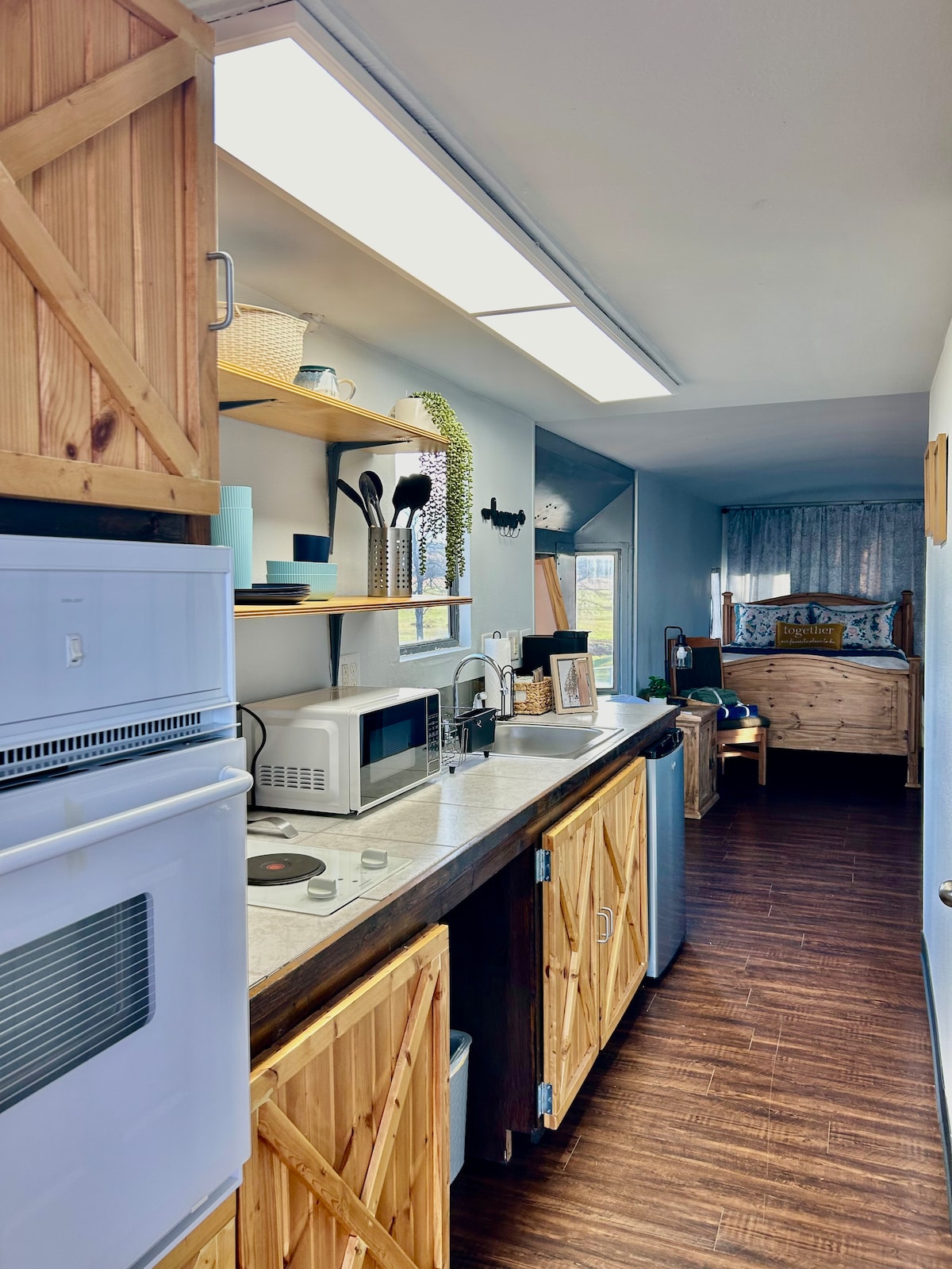 Built in 2021. Keep it simple at this peaceful, centrally-located get-away. Located 2.3 miles from Cookson Bend Marina and Carlisle Cove boat ramp; 1.3 miles from Nautical Adventures scuba shop. Located 25 minutes from the upper Illinois River. Plenty of space to park your boat or trailer. This space is 300 sqft stocked with coffee, mini fridge, and microwave. High-speed internet. 2 queen beds. Full private bathroom. Yoga sessions, kayak tours, and guided hiking available!