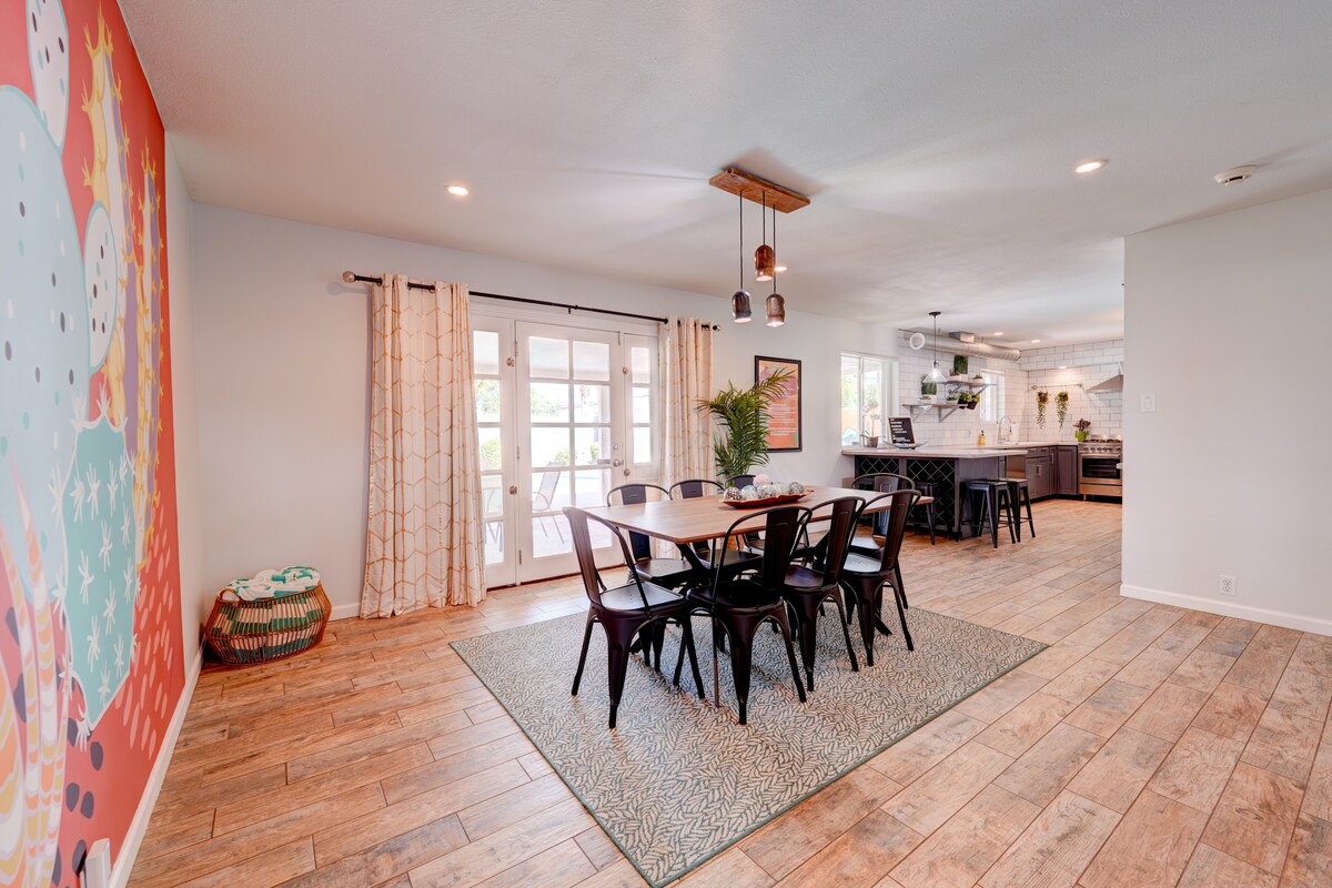 Low Cleaning Fee! Super fun luxury property! PERFECT location! Dreamy private heated pool (heating included), chef’s kitchen, two King beds and four bunk beds. Walk to Starbucks (and other spots). Take photos with the custom murals! Four HD Smart TVs! Property is modern and spacious enough for any size group! Family owned, operated and meticulously cared for. The neighborhood is super chill & convenient to everything! Super low fee! Read our reviews! We Care! @GoodVibesScottsdale