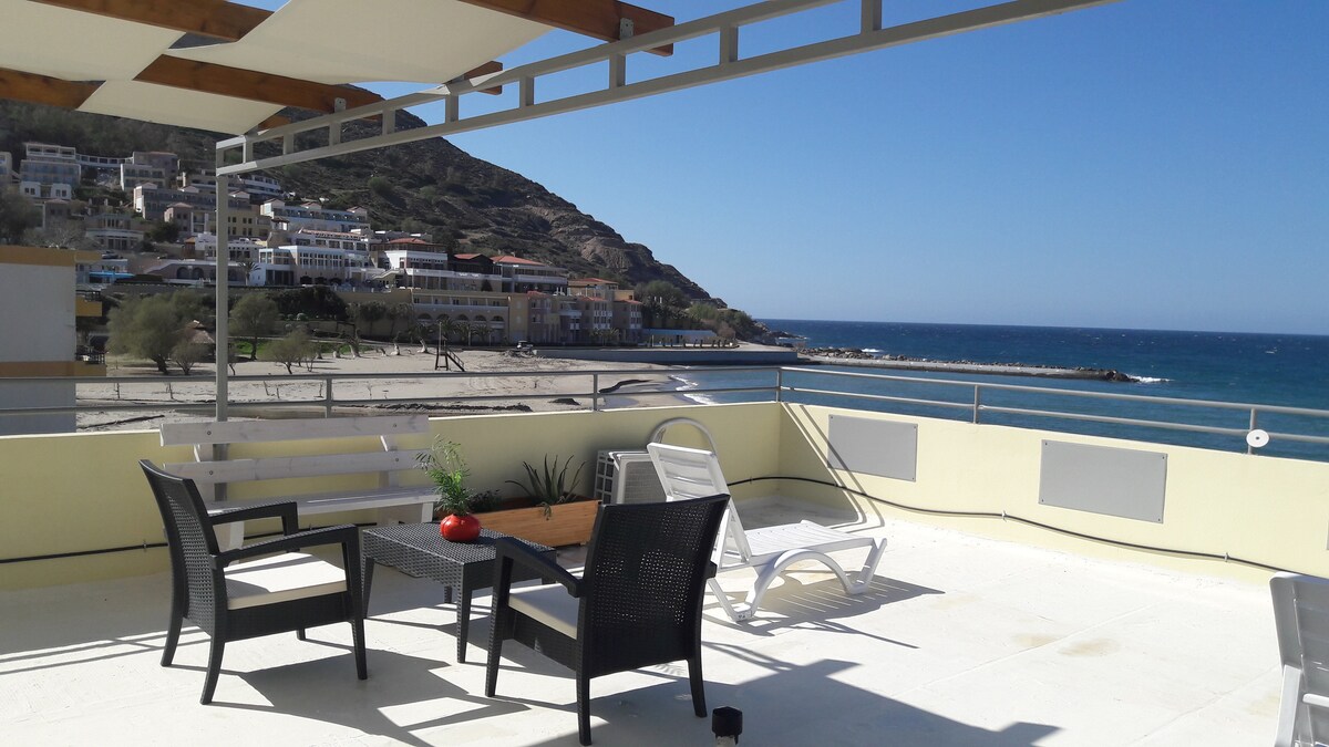 Comfortable 2 bedroom appartment with amazing view. Access to a lonely rocky beach 250 meters in front of the house. Also between 2 popular beaches (Agia Pelagia & Lygaria, 10 min walking). .After communication and after 15.00 I could pick you up (for free) from the airport of Heraklion (if it is allowed). Very easy parking 20 meters away. The jacuzzi is private and the balcony around it. Also private is the balcony in front of the kitchen. the jacuzzi Is brand new and heated (till 35°).