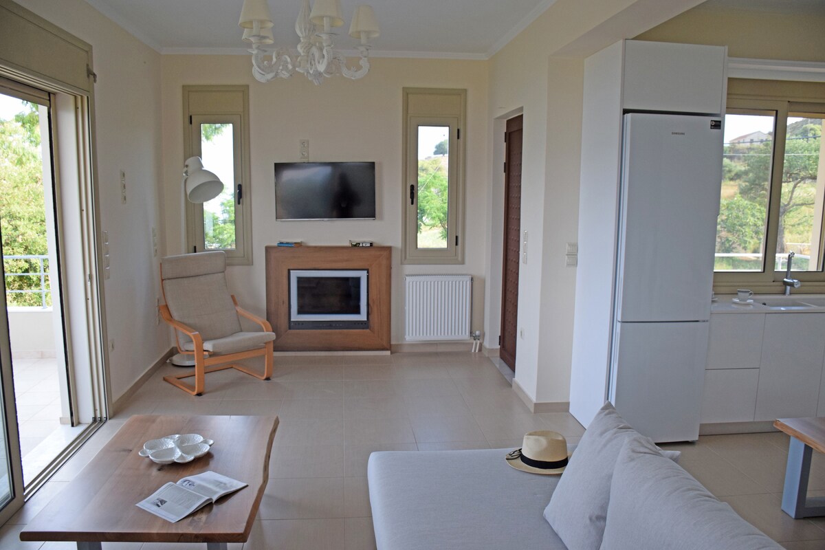 New bright apartment! It is located in Loggos a 10-minute walk from the center of Lixouri and 15 minutes from one of the most famous beaches named Lepeda. It is designed with an harmonious marriage of luxury, comfort and style. It provides a large variety of amenities and offers a great living experience for the best value vacation. High-quality facilities same as a 5* hotel. It is certain that the guests will enjoy the incredible view from the balcony of the house.