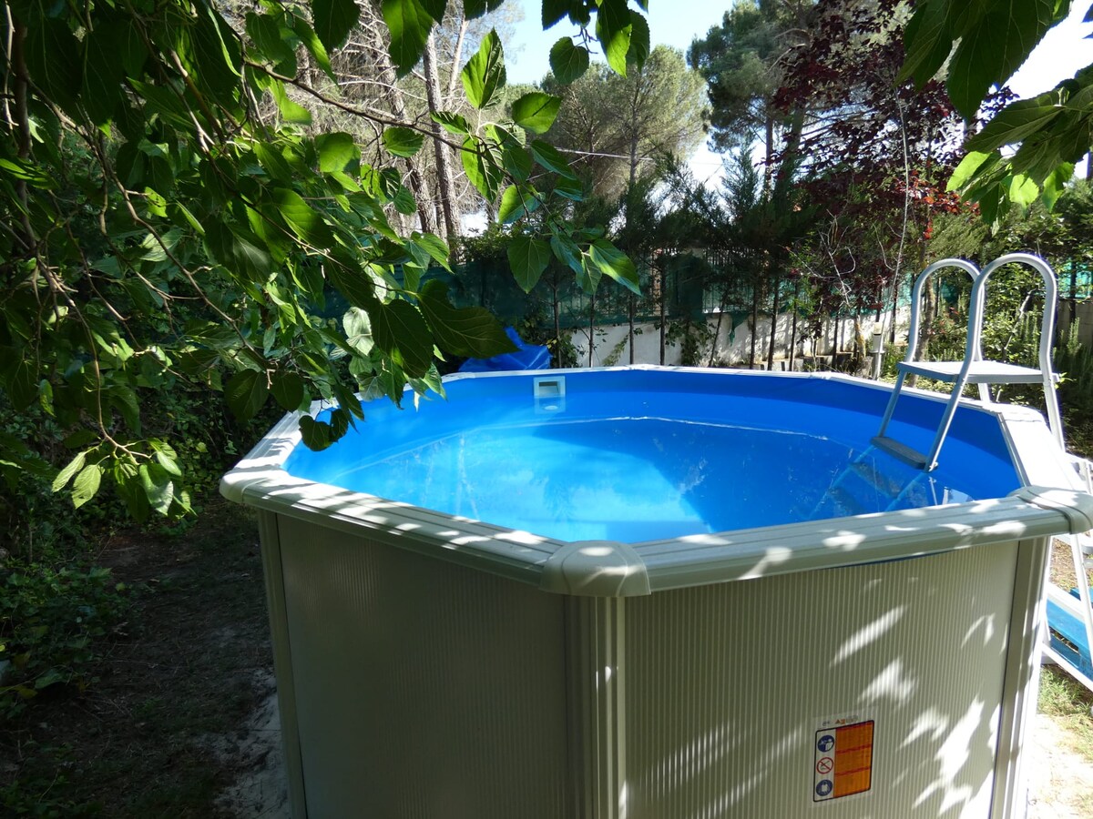 Bonita casa de pueblo, con un gran jardín, barbacoa, piscina, cama elástica para los niños y merendero. Ideal para pasar unos días tranquilos en familia o venir a trabajar a Valladolid. La casa es muy amplia y luminosa, cuenta con 1 dormitorios dobles y 1 baño con plato de ducha, en el dormitorio se puede poner una cuna. La casa está a 10 min de Valladolid. En el salón hay chimenea y también calefacción en la habitación y el baño