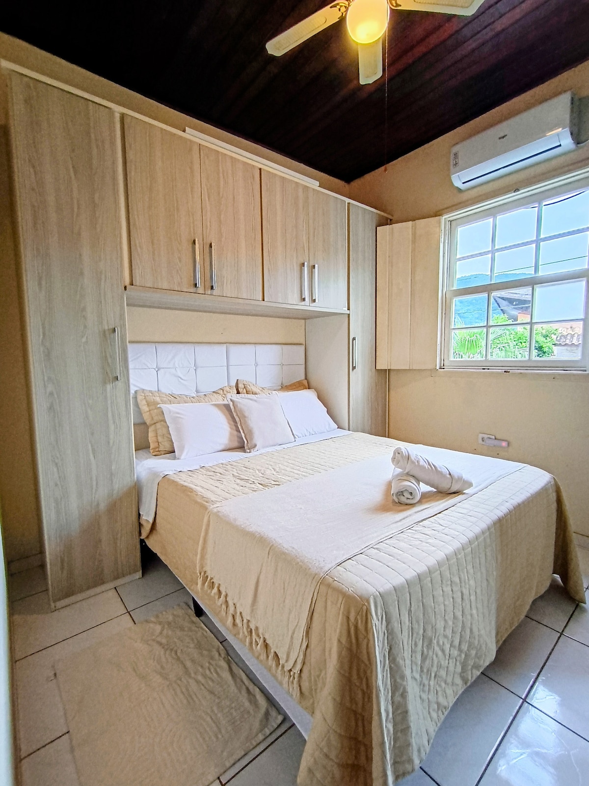 Located 400 meters from the Historic Center of Paraty, near the main tourist attractions, built with all the affection for your comfort and well-being. Our purpose is to offer tranquility for your rest, with the feeling of being at home. The Flat is prepared to provide you with a pleasant stay. For couples and equipped with TV, ceiling fan, private bathroom, and compact kitchen with minibar, microwave, coffee maker and sandwich maker.