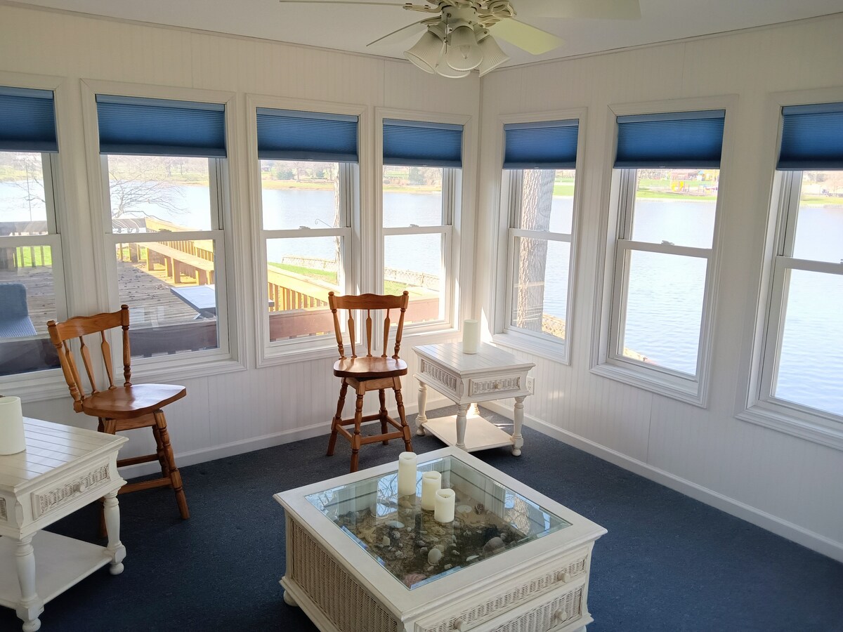 This home is situated on the river, offering a private setting with quick access to other amenities. It’s only 5 miles to I70, 3 miles to Indiana State University, 7 miles to Rose-Hulman Institute of Technology, and 6 miles to Saint Mary-of-the-Woods College. It’s also just half a mile away from The Landing. The home features a full kitchen, a living room, two bedrooms, and two full bathrooms. There’s also upgraded WiFi and a 58-inch Smart TV with basic cable in the living room.