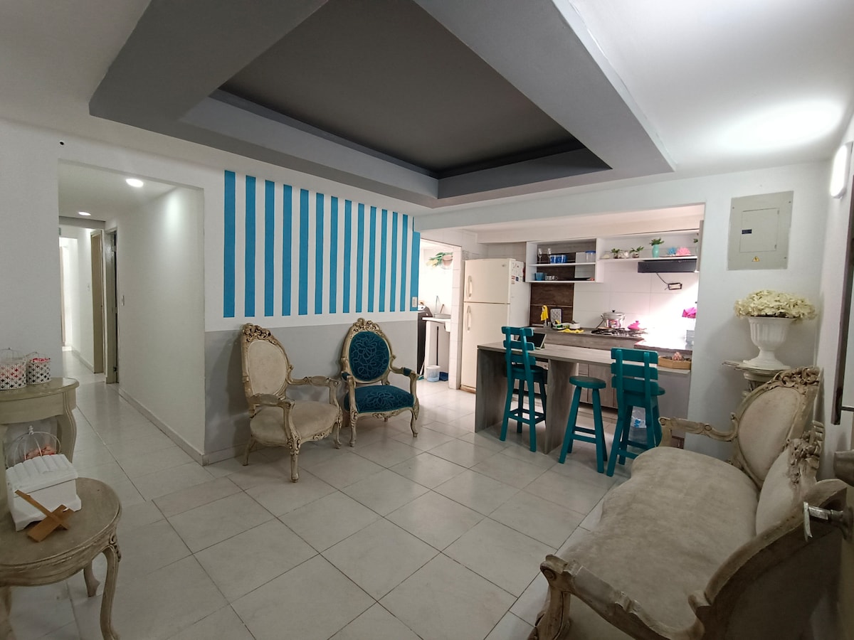 Relax with the whole family at this peaceful place to stay. Capacity for 7 people comfortably in our independent apartment where you will have a private kitchen, private bathroom, 2 double beds and 3 single beds, independent entrance, air conditioning and refrigerator so you can enjoy Santa Marta in all its splendor, just 250 m from the best beach in Santa Marta, El Rodadero where you can enjoy the Colombian Caribbean coast independent exit to the street
