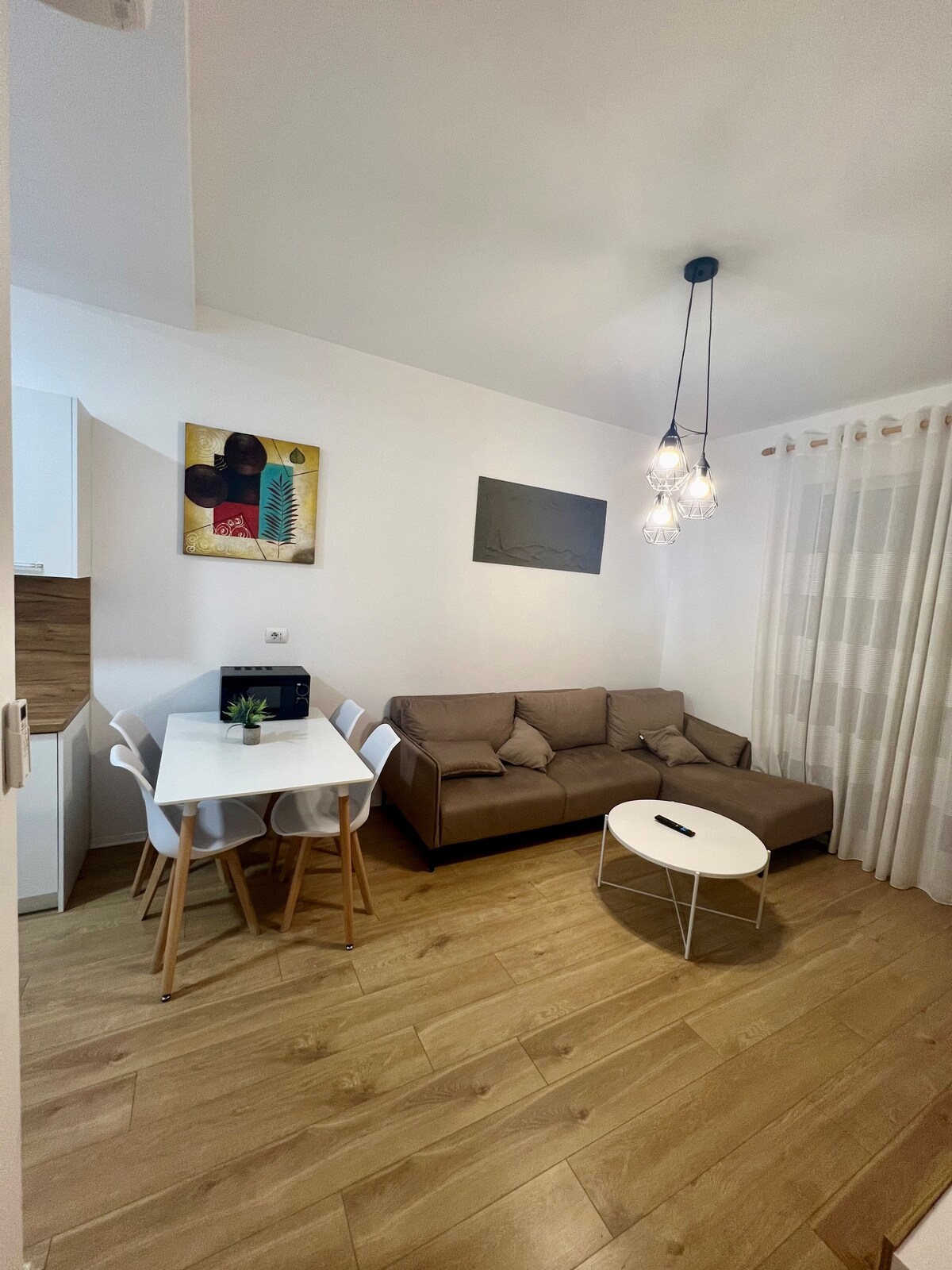 Experience the best of urban living in our chic and cozy apartment. This spacious haven boasts a modern living room and kitchen, plush bedroom, and a serene balcony. Book now and immerse yourself in the Tirana's lively atmosphere! ID verification may be required in specific cases! Public street parking can be difficult to find at certain times. Private paid parking is available close-by.