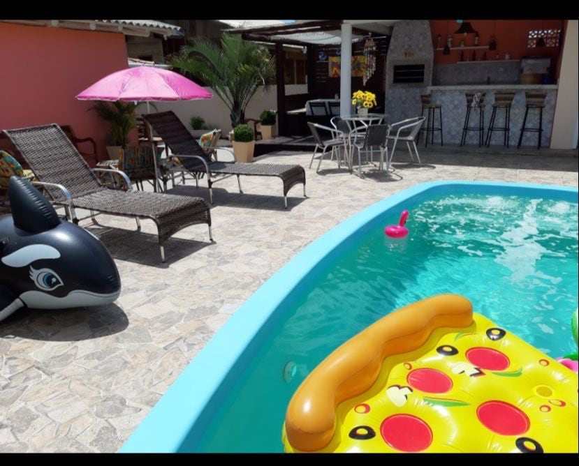 Spacious house just 100 meters from the sea, perfect for families and friends. It comfortably accommodates 8 people, and can serve up to 10 people. There are 3 bedrooms, 1 suite with air conditioning and TV. Enclosed bedding. Spacious living room with 50" Smart TV, reclining sofa and dining table. Wi-Fi, large and well-equipped kitchen, barbecue and large patio with parking for 3 cars. A calm and safe beach, ideal for relaxing. Experience special moments by the sea with those you love!