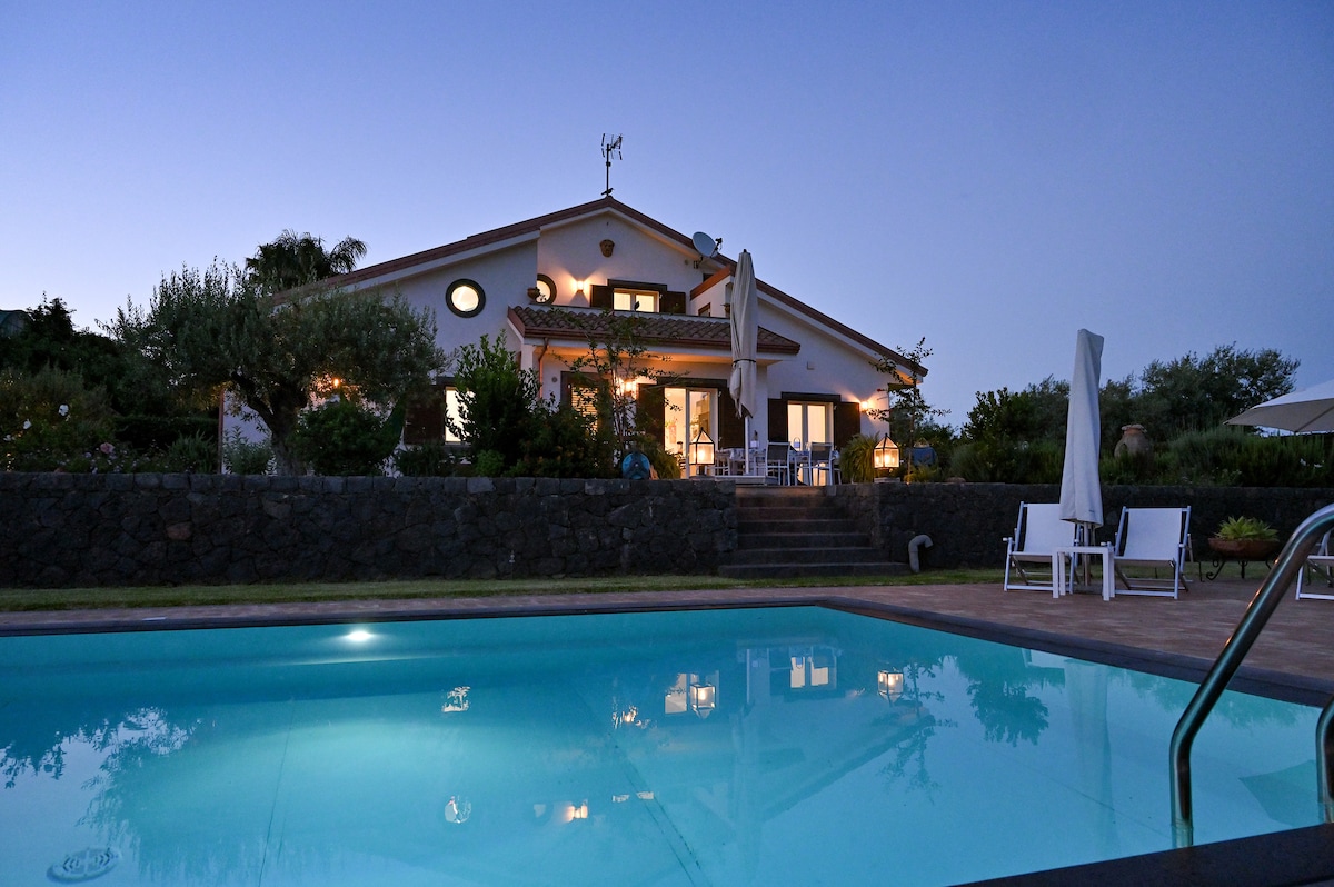 Exclusive villa on Etna, 550 meters above sea level, located in Puntalazzo-Mascali. It is 45 km from Catania airport and 35 km from Taormina. Large green spaces with barbecue area, swimming pool and view of the Ionian coast. The interior includes a large bedroom with kitchen and appliances, bathroom, air conditioning and Wi-Fi connection.