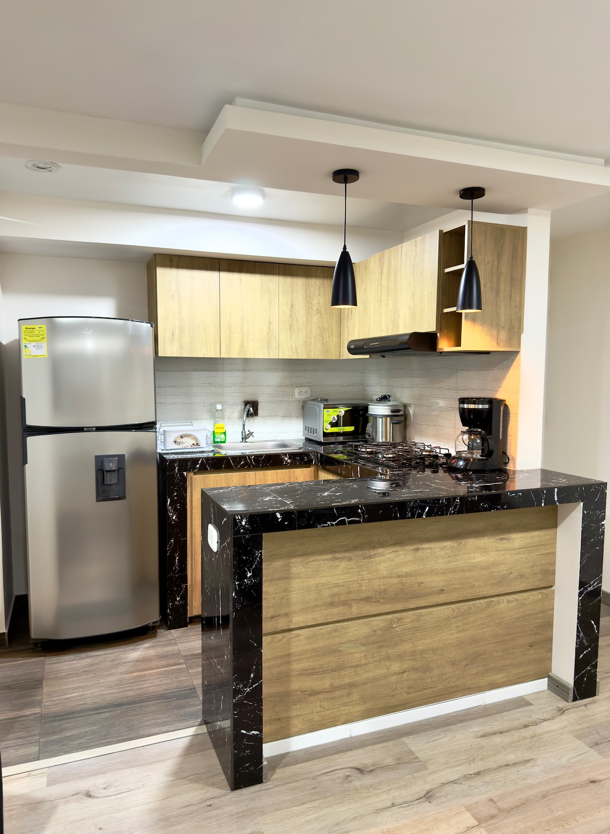 ✨ Modern studio with king bed (2x2mts) and prime location on Cra. 27 📍 Enjoy a cozy and exclusive space just minutes from downtown, Unicentro, Casona de Taminango, and Bomboná. 🌿 Private terrace with dining, lounge area, and volcano mural. 🚗 Free covered parking inside the building. 🎁 10% discount for your next trip. 💫 Ideal for couples, business trips, or relaxing getaways. 👉 Book now and enjoy a unique stay.