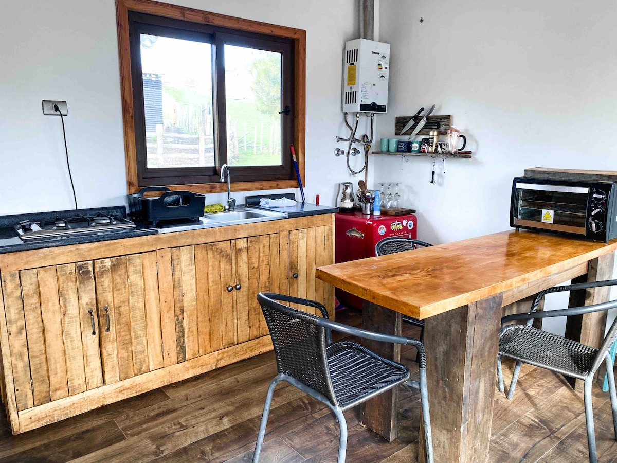 Just 10 kilometers from Coyhaique, connect with nature at this unforgettable escape. Our tiny house is located in our field, a private and quiet place, where you can have access to the river, trails, Patagonia live !! We are small producers of sheep wool, which makes you live the experience of staying in a Patagonian ranch, a unique experience. Additional services with extra costs include a hot tub from August to May and fly fishing trips in season