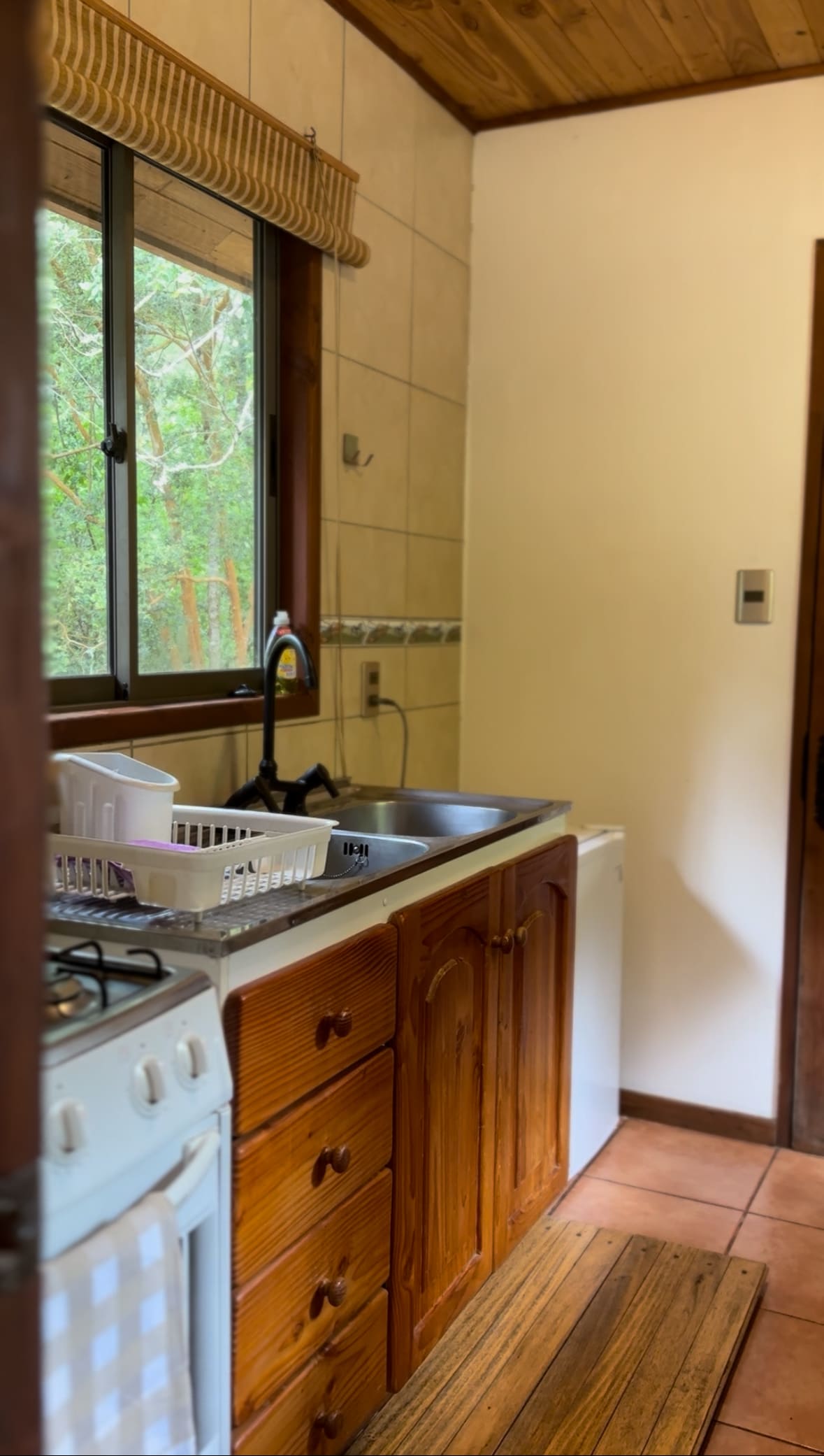 Hermosa cabaña -Martín Pescador- de madera tejuela de 55 mts2 con 2 habitaciones, una con cama matrimonial de 2 plazas y otra con cama plaza y media más cama nido de una plaza. Calefacción con radiador eléctrico y adicional calefacción a Pellet central. Amplio baño con lavadora incluida. Cocina equipada y Frigobar. Excelente construcción con aislación térmica, piso de madera y todos los ventanales en Termopanel. Opción de un excelente desayuno por $7.500 pesos chilenos p/p.