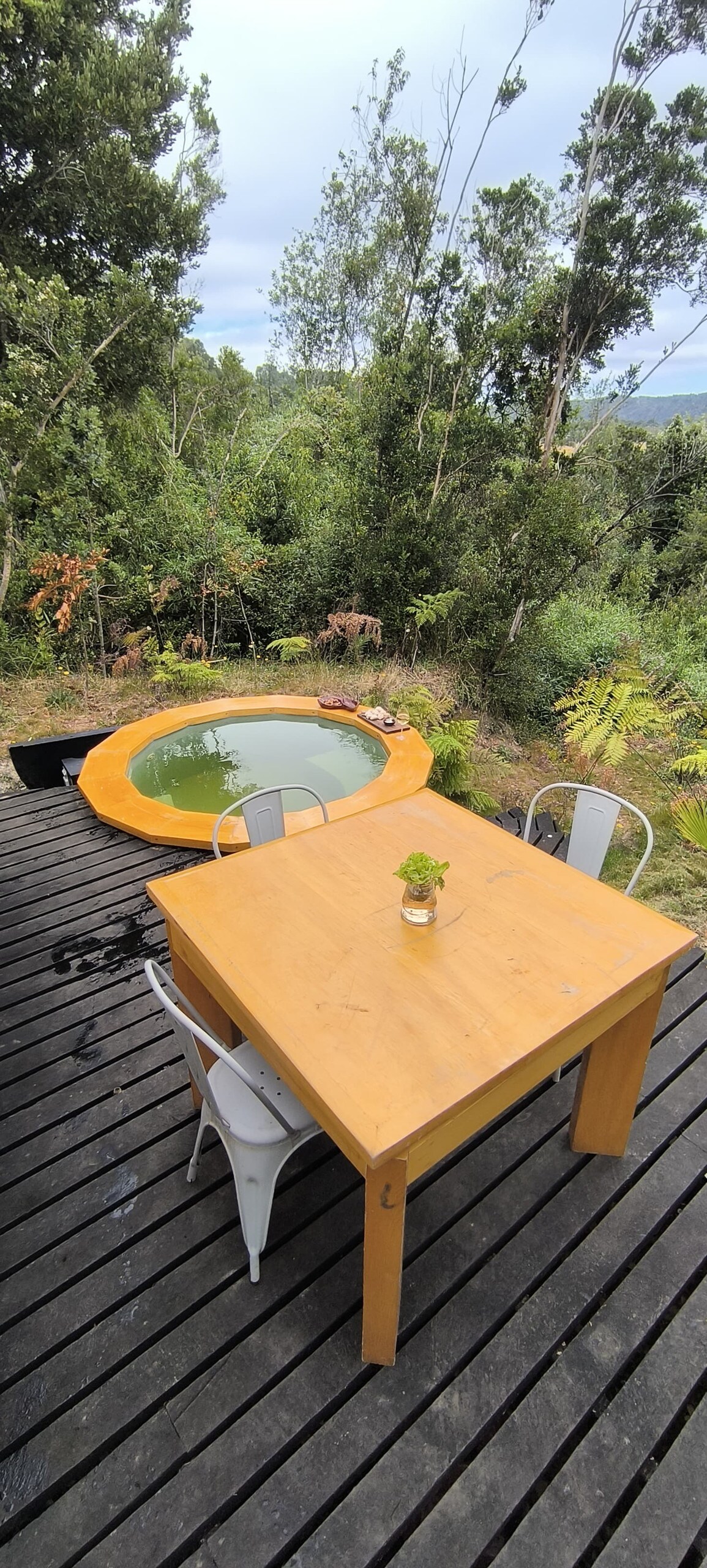 The stay in the yurt aims to deliver a unique and unforgettable experience, which allows you to connect and enjoy the wonders of nature, the sound of the wind and the rain. Immersed in the native jungle, classic of the VIII region. You can see endemic flora such as canelos, arrayanes, hualles, copihues, as well as a variety of birds such as chucao, loica, owls. This place offers a complete adventure to do with friends and family. Only 20 minutes from Ccp. Tinaja additional cost.