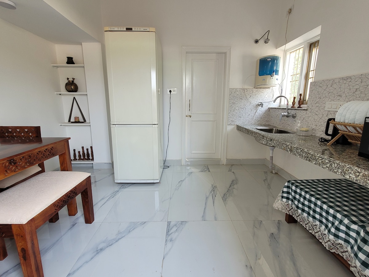 This open-plan studio apartment follows minimalistic design principles. Equipped with a kitchenette, two bathrooms, a full-sized King bed, a queen size Wall Bed, TV with Netflix, Hotstar, PrimeVideo, JioCinema and free WiFi, this space is capable of comfortably hosting a family of four. Please NOTE: This is an open plan apartment, and there are NO private bedrooms, the apartment is on the second floor, so you’ll need to go up two flights of stairs. NO PARTIES PLEASE 🙏🏽 and NO SMOKING 🚭