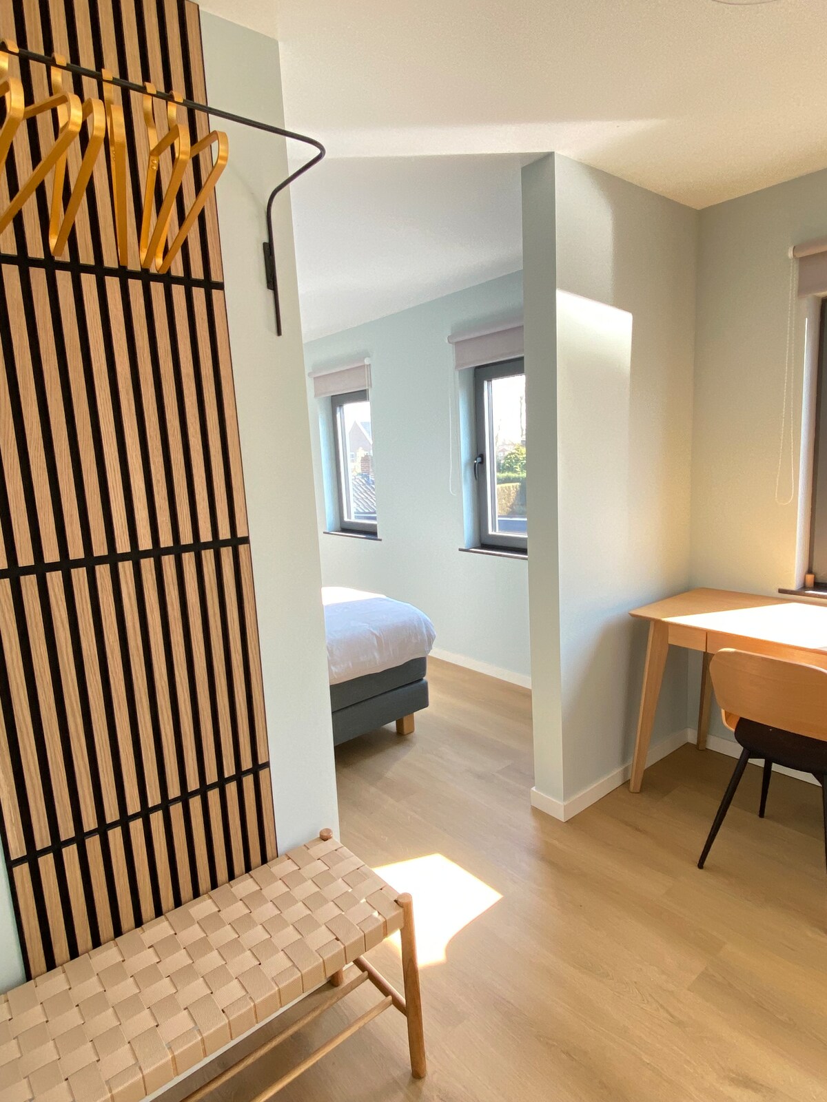 Stylish apartment on the 1st floor of a luxury mansion with rural views. Located on the outskirts of a picturesque Limburg village, a short distance from various highways to Germany and Belgium. Free parking in front of the door. Restaurants and shops within walking distance. The apartment has a fully equipped kitchen. There is a smart TV. In the shared garden, there are several seats where you can relax.