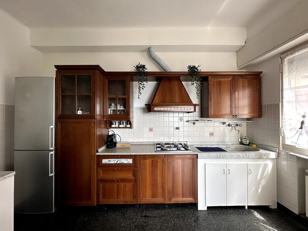 [Parking space in private garage and Free Wifi] The apartment, equipped with a terrace, is located in the Genoa Sestri district in a very central position, but in a quiet private context. Various commercial activities are located in the residence including bar, pizzeria and delicatessen. The shopping pedonal street, via Sestri, is only 3 minutes by walk. The historic center of Genoa is only 8 km away Railway station: 350 m Bus stop: 50 m C. Colombo Airport: 1.8 Km Ferry boarding:6.2km