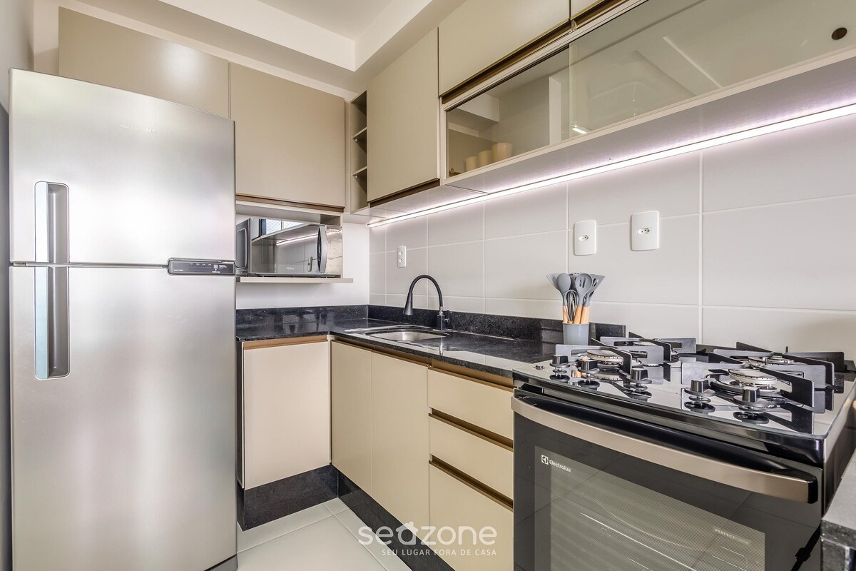 Enjoy an elegant experience in this well-located place. The accommodation has a breathtaking view of Armação beach, easy access to the beach where the sea is calm for children. Close to Beto Carrero Park, just 800 meters away. Close to the market, shops, pharmacy and bakery. The lodging accommodates your family and friends to create amazing moments. The building has an amazing swimming pool, gym, sauna, game room and workplace. Garage for 2 cars