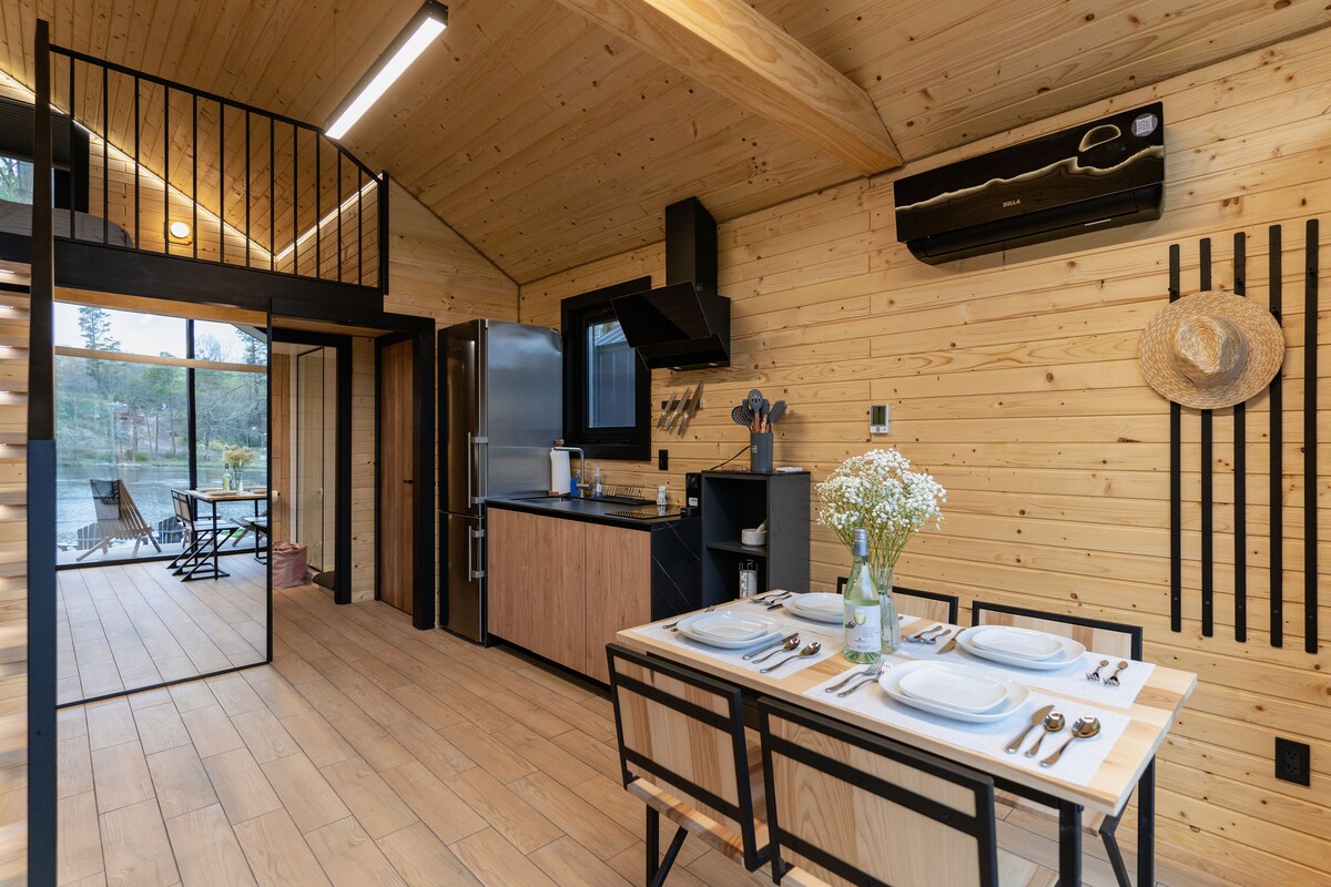 Escape the ordinary and step inside our modern chalet, a true lakefront with kayaks and canoes. Our modern kitchen is equipped to cook a chef’s meal and feast at a rustic farm table. Relax by the crackling fire of the fireplace. Indulge in the Finnish sauna after hiking or skiing. The natural light, pine trees and panoramic views of the lake, make it a peaceful place to enjoy some nature. Comfort awaits with 100% cotton linens, firewood provided on-site, and 4 Smart TVs and SPAN EV charger.