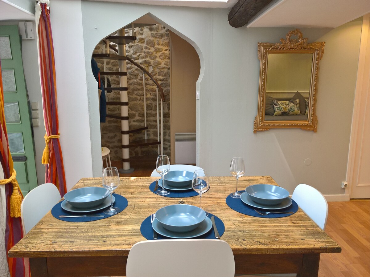 Located in the heart of Minervois, in the historic center of the village of Caunes Minervois, Maison 5 is the perfect place to enjoy your vacation peacefully. It is an invitation to the sweetness of life. Close to the medieval city of Carcassonne, at the foot of the Montagne Noire and 40 minutes from the first beaches of the Mediterranean, it is perfect as a base for visits to the region. It can also be used as a stopover during a business trip due to its functionality.