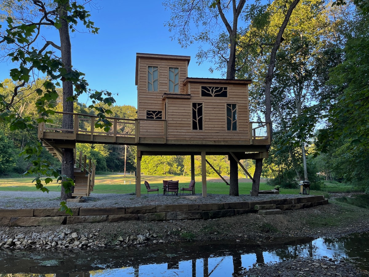 Special Reconnect and Rekindle Pricing! Escape to The Royal Roost at Owl Hollow, where the magic comes alive. Cozy up with the ones you love in the comfort of your arboreal abode. The Royal Roost Treehouse offers a one-of-a-kind luxury escape. Combining rustic charm with refined comfort. Whether you’re seeking a peaceful getaway or a romantic retreat, the Royal Roost invites you to relax and reconnect.