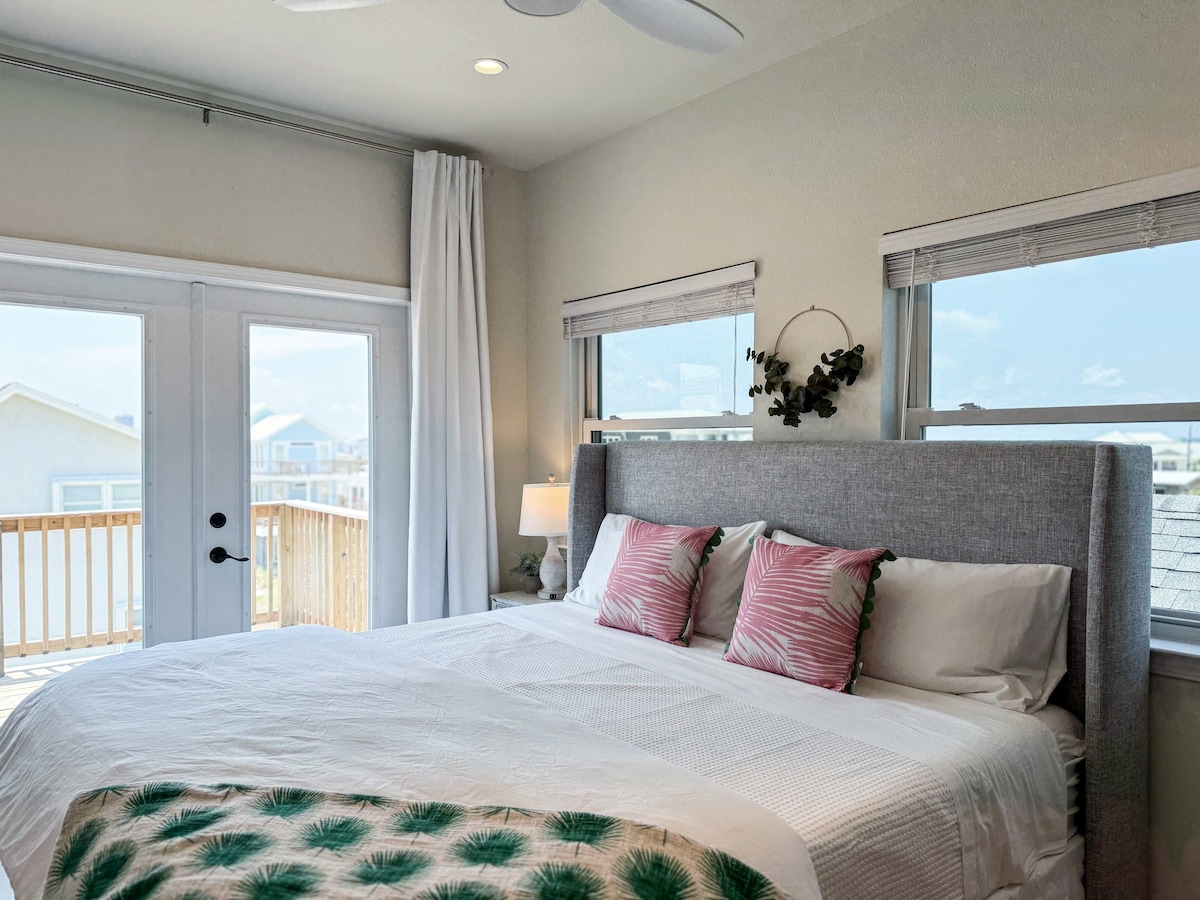 TWO Gulf-View Balconies • Heated Pool • Gulf & Sound Access • King Suite • Family-Friendly Escape to our spacious 3-level Pensacola Beach condo for 8! Enjoy Gulf views from two private balconies, direct beachfront access, and a heated community pool. This waterfront retreat features a chef's kitchen, a primary suite with a Jacuzzi, and a fun bunk room. Perfect for families seeking a serene coastal getaway with modern comforts and a prime location near Fort Pickens.