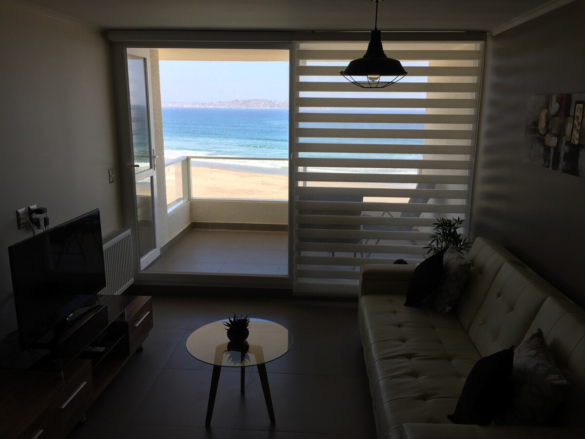 Oceanfront, beachfront, next to the Enjoy casino. Direct ocean view. Building with all amenities, swimming pools, gym, laundry, 24-hour concierge, covered parking. A few steps away from the best restaurants, mini-markets, bike path and 20 minutes from Coquimbo airport. Fully furnished apartment with 3 bedrooms for 6 people. It has cable TV, internet, an equipped kitchen, a jacuzzi in the master bedroom, bed linen, and towels.
