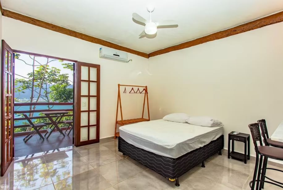 We are located between the Ferry and the Historic Center, a 9-minute walk from the beaches of Pereque/Itaguassú, in the central region of Ilhabela. All apartments are private with independent entrance and access to common areas with parking, terrace, barbecue and panoramic lounge.