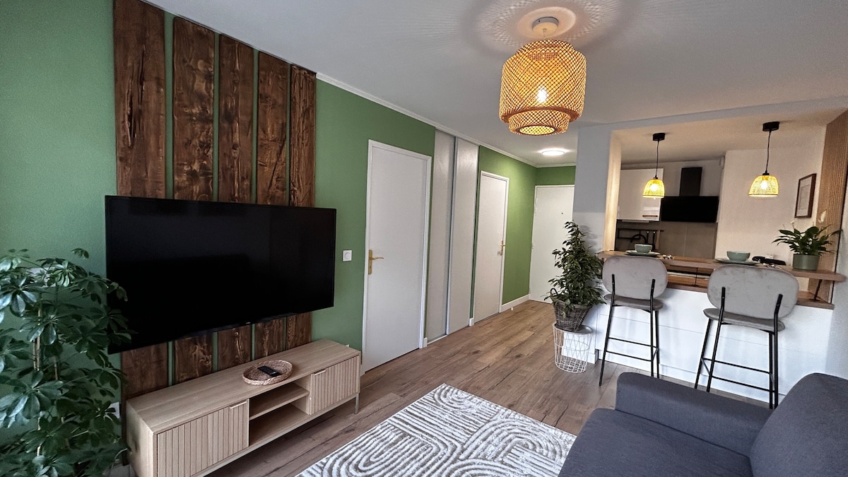 ✨Enrich your travel experience at L'Oasis Urbaine, a stylish and radiant duplex situated in a tranquil neighborhood right in the heart of Perpignan. Experience an amalgamation of chic bohemian vibes, a sun-kissed terrace, and a private swimming pool. This exceptional establishment provides luxurious comfort for a premium stay, perfect for families or a group of friends. It's not only a stone's throw away from the bustling city center, but also conveniently located near the pristine beaches.
