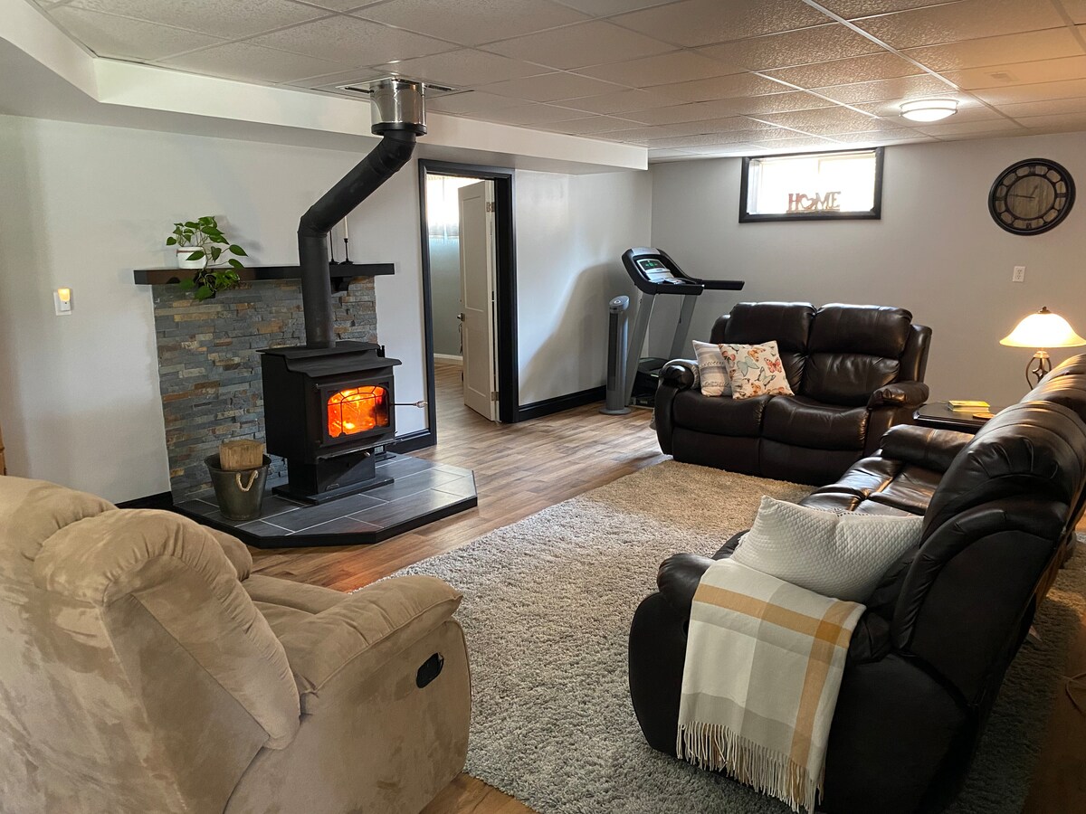 Come join us for a relaxing stay in the country, surrounded by rolling farmland and beautiful scenery! Pet-free Walkout basement with separate driveway and private ground level entrance. Located close to Mount Forest and Harriston for local dining options, parks or snowmobiling. Cozy, bright and spacious basement with shared outdoor play area, outdoor seating, and firepit available. Wood-burning stove for chilly evenings!