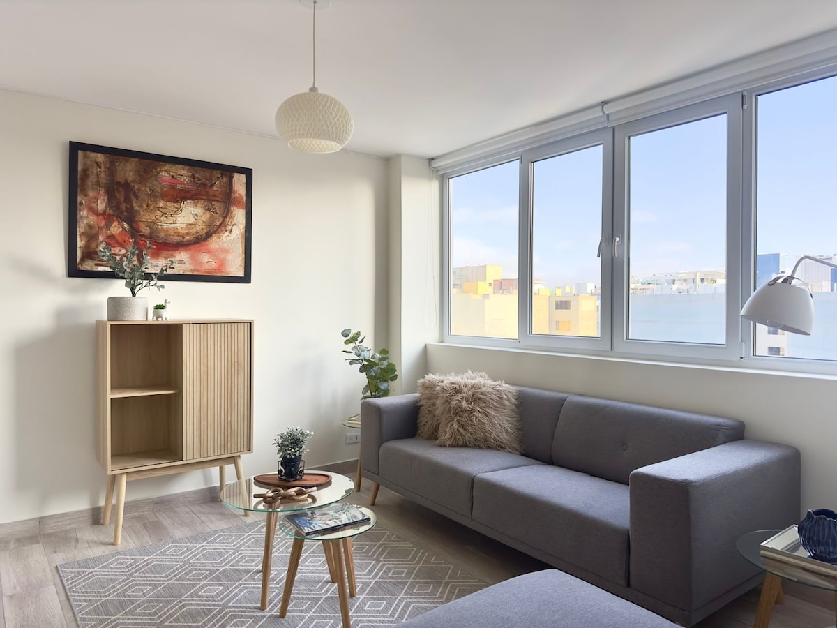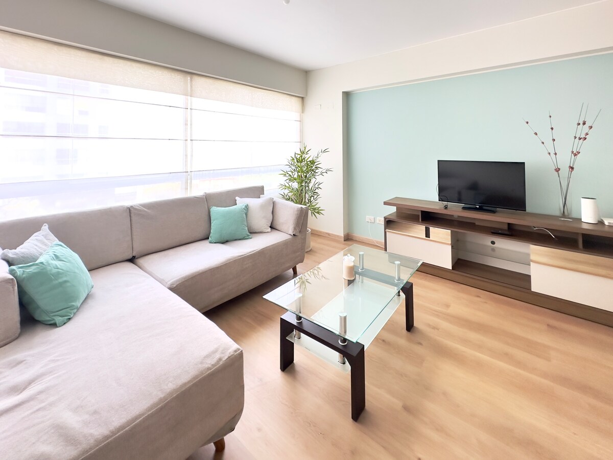 Comfortable and spacious apartment on the edge of Miraflores Enjoy a comfortable stay in this spacious apartment located on the border with Miraflores, in a quiet area of the Surquillo district. Ideal for business or leisure trips, with everything you need to feel at home. -Wi-Fi -Smart TV - 2 bedrooms - 2 full bathrooms - Spacious and bright living-dining room - Fully equipped kitchen Book today and have a great experience in Lima