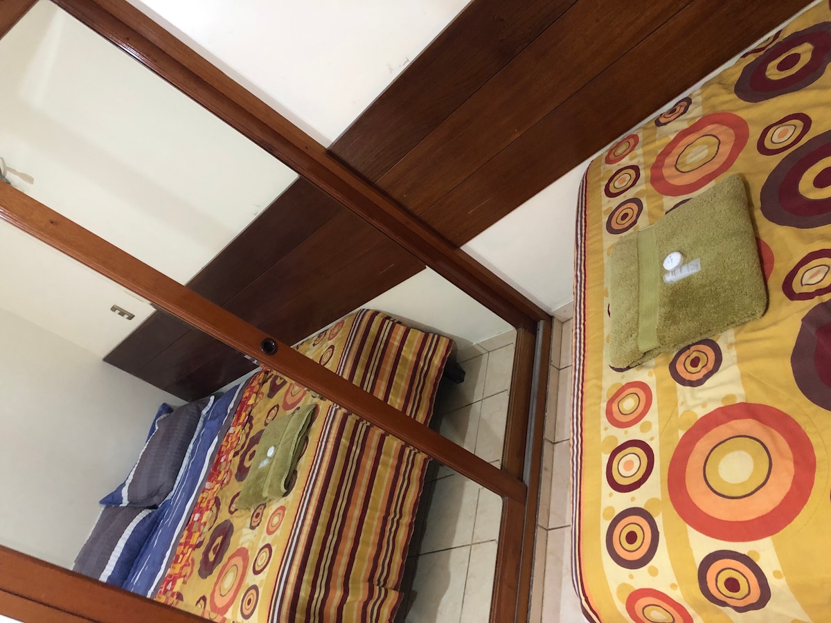 Beautiful 25 sq. meter room overlooking the street in a safe residential area. Private bathroom with jacuzzi, hot water, wifi Internet, cable, smart TV, cold bar, queen size bed.
