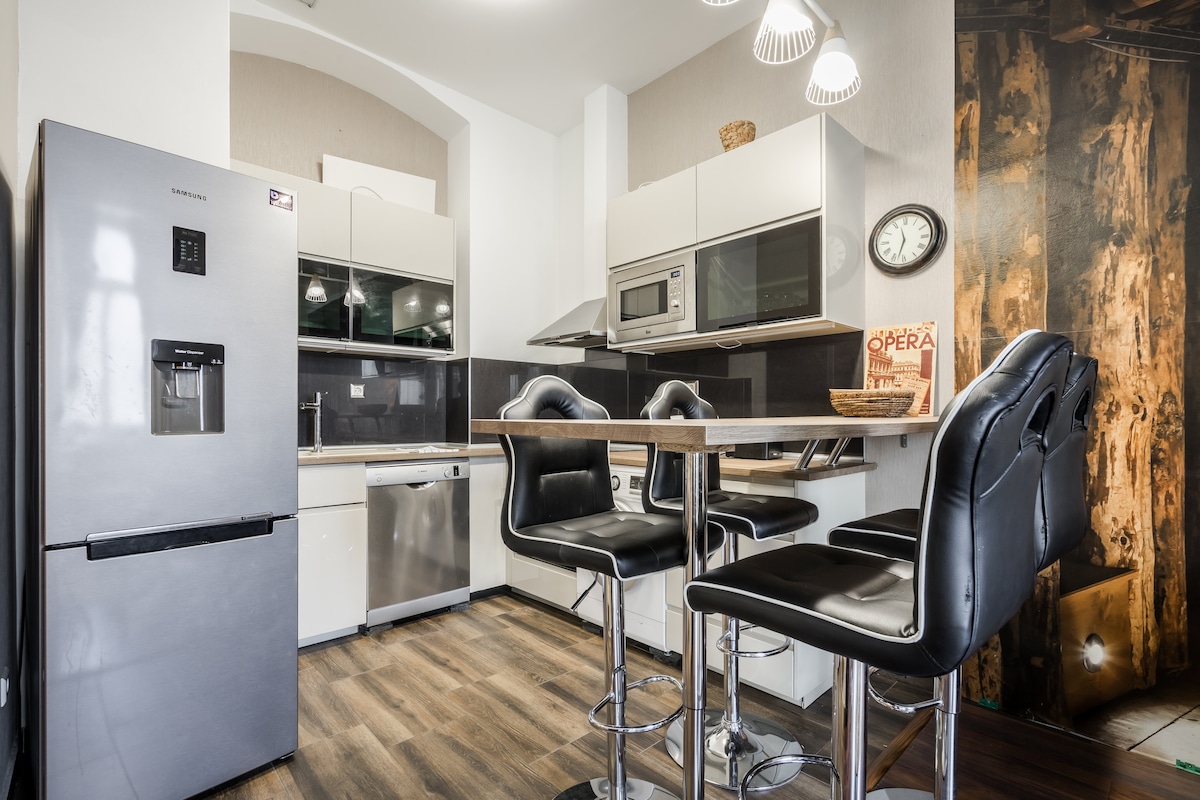 ●AMAZING View of Budapest Eye and Deák sqr. ●UNBEATABLE location by the main square of Budapest [Deák Sqr] -You cannot find a better location for your accommodation I promise!:) ●110 square meter apartment ●AIRPORT BUS stop: 2mins ●2 SEPARATE BEDROOMS ●BALCONY ●AIRCon ●FULLY-Equipped kitchen ●LISTED Historic Building ●SAFE Neighborhood ●ELEVATOR ●HIGHSpeed WiFi ●LUGGAGE Storage: 1min ●SECURED car park: 2mins ●REAL vibe of Bp-be part of it! -Here you can feel like a real resident of Budapest:)