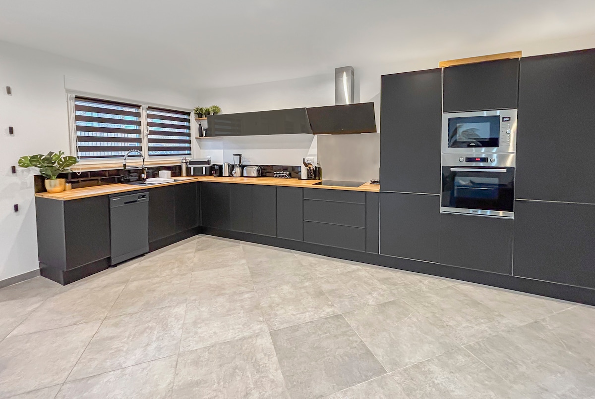 Charming new house with all amenities, 80 m² with enclosed private garden, tastefully decorated. You'll find everything you need to make yourself at home Ideal for stays or for hosting employees on weekly trips Entrance, with an open room overlooking a fully equipped kitchen, living room, dining room (corner sofa, TV) table and chairs, fiber, Netflix Toilet, washing machine. Upstairs 3 beautiful bedrooms & bathroom with shower + toilet Parking