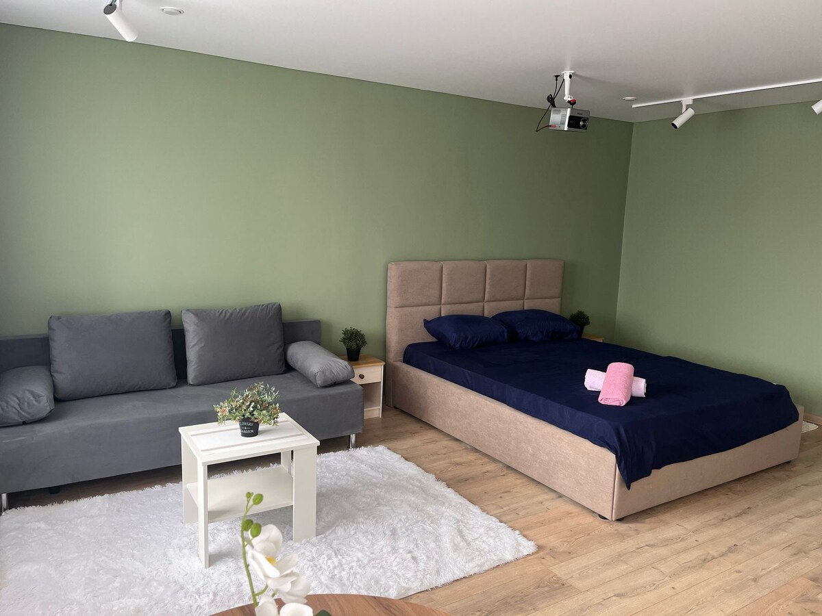 A 1-bedroom luxury apartment in the city center. The location is in the very center. Staying in the apartment will give you vivid emotions and you will want to come back here again. The apartment is equipped with all the necessary household appliances, a double bed with an orthopedic mattress (mattress with coconut filler), a projector, unlimited WiFi, as well as a sofa for a comfortable pastime.