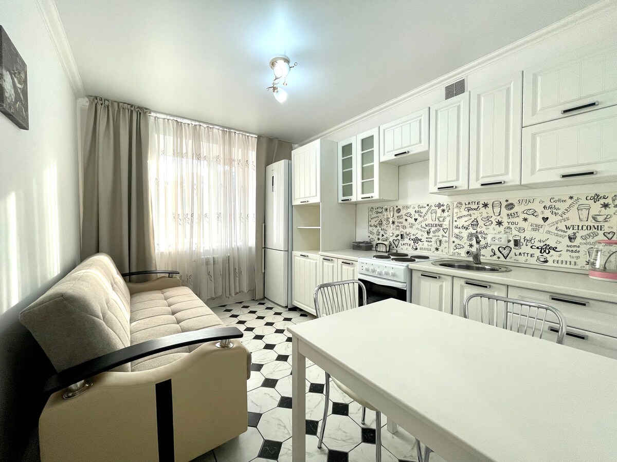 A stylish one-room apartment with a new renovation in the Uyut district is for rent — a great place for a comfortable stay! A fresh interior awaits you here. A spacious room with a comfortable bed and TV. The kitchen is equipped with everything you need: a stove, fridge, microwave and utensils for cooking simple and delicious meals. The bathroom has new plumbing. Free WiFi is available in the apartment. Surrounded by shops, cafes and convenient transport hubs. Contactless check-in and payment are available.