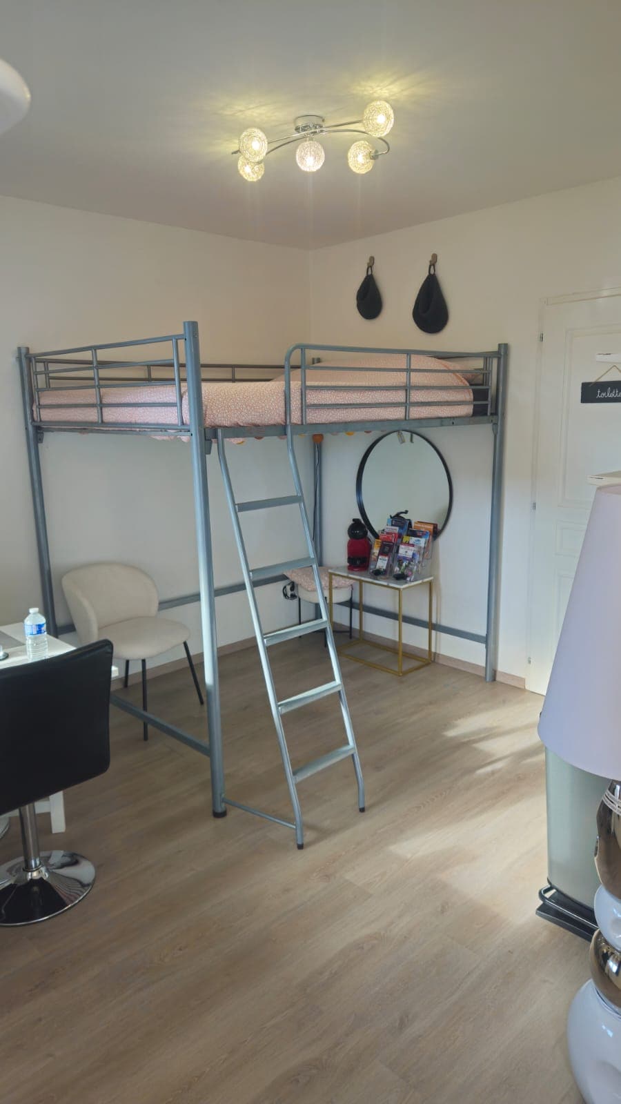 Our F2 cottage is located at the end of the garden of the family property. It is self-contained, with a separate entrance and a private garden. It is 50m², it can accommodate from 1 to 4 people. Pets welcome! You will have a bedroom with 1 double bed of 1.60 m and a closet, a living room with a sofa bed, a fully equipped open kitchen and a bathroom with shower and wc. Flat screen TV and free wifi. Parking possible in the paved courtyard.
