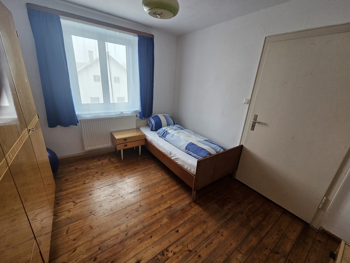 Apartment on 2nd floor. New bathroom with shower and toilet. Private entrance, quiet location with large balcony 2 bedrooms, each with two beds, cozy kitchen-living room with dining area, and good parking options Wi-Fi, satellite TV and central heating available McDonald’s and supermarkets are just 500 meters away and easily reachable on foot Motorcyclists and cyclists are very welcome. We offer a covered parking space for your vehicles. Please note our check-in and check-out times!