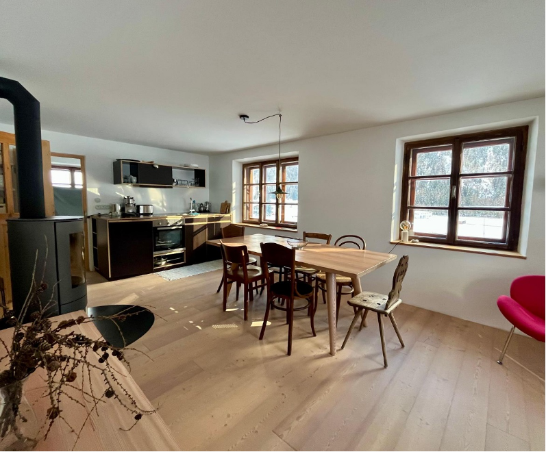 The house has been lovingly rebuilt and renovated by us with local materials with local materials. We rent it to groups and families or use it ourselves as a vacation home. It is idyllically located at 1430 m in the middle of meadows and agricultural areas and is surrounded by the breathtaking scenery of the 3000 m of the main Alpine ridge. The village of St. Jakob with inns and shops is only a 10-minute walk away. The house is also very easy to reach in winter on the regularly cleared driveway.