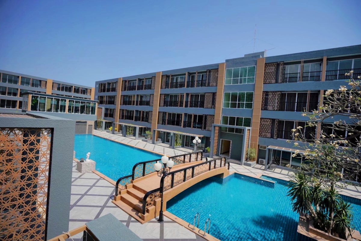 Enjoy easy access to popular shops and restaurants from this charming place to stay. Seize your exclusive vacation here, you will enjoy the pool view from your room size 32 sqm. My place is only 3 mins walking to the beach, you can easily enjoy the sunset & sea vibes. There are plenty restaurants near by & easy access to beach area facility. Lovely free swimming pool & gym is at lobby. You will get the best experience ever had. also Free wifi & 24hr security. Free Bicycle rental 24 hrs .